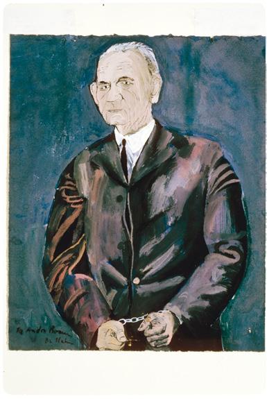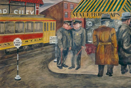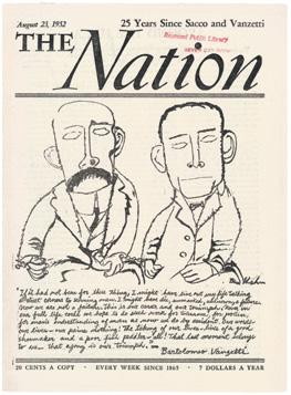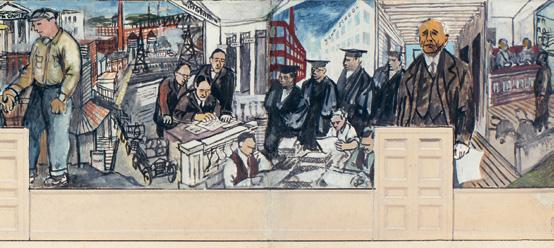 Shahn found in mural and poster painting the media with which to fulfill his aspiration to make art for and about workers. He was forever aware of the difficulties and contradictions such an enterprise entailed, but as an aspiration it had been his guiding principle since the early 1930s when he produced a series of seminal paintings inspired by notorious court cases that shook U.S. society at the time. These included the case of Nicola Sacco and Bartolomeo Vanzetti, two Italian immigrant anarchists who were executed in 1927 for a murder many believe they did not commit; and the case of Tom Mooney, a labor activist from San Francisco who was condemned to over twenty years in prison, in a trial replete with irregularities, as the supposed instigator of an attack on a parade organized in 1916 in support of U.S. participation in World War I.