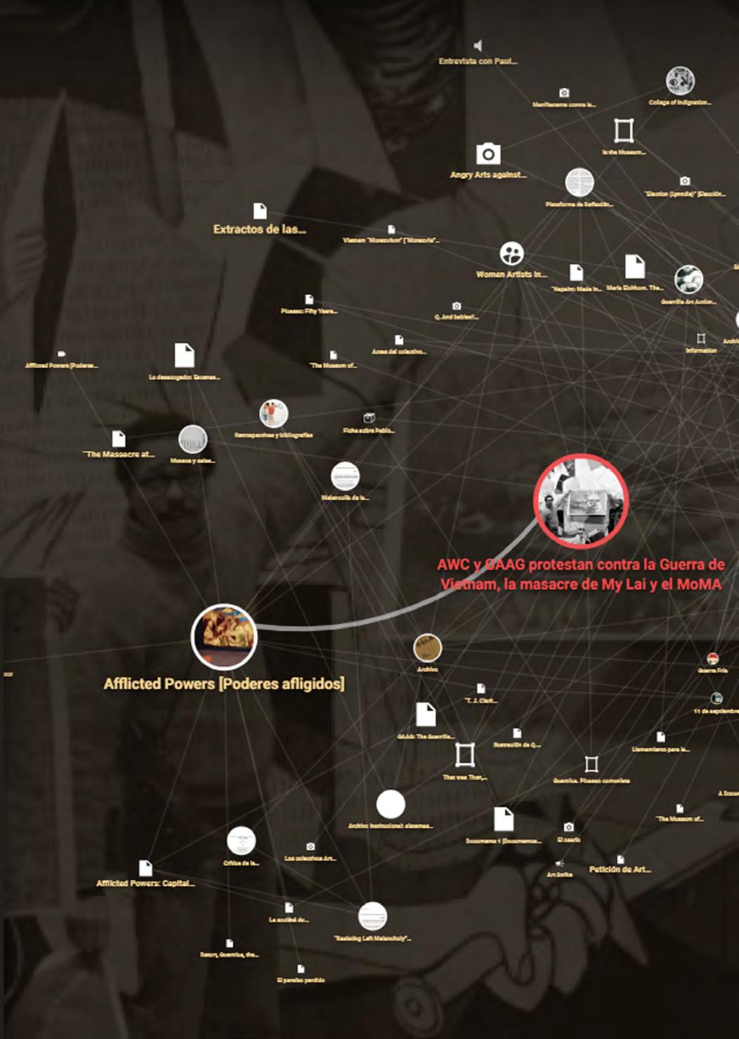En lo relativo a la Colección, además de la donación y la muestra mencionadas, destaca la presentación de dos nuevas secciones del microsite Repensar Guernica destinado a estudiar desde la contemporaneidad el mural de Pablo Picasso poniéndolo en relación con diferentes relatos, ámbitos de conocimiento, geografías y momentos históricos: por una parte, Contra-archivos (im)posibles, comisariada por el historiador del arte Francis Frascina, que reúne más de 200 documentos en un extenso mapa de conexiones que parten de la resignificación política de Guernica que realizaron varios colectivos estadou nidenses de artistas-activistas durante las guerras de Vietnam e Irak; por otra, Historia oral, un apartado en proceso que recoge testimonios de primera mano vinculados con la obra y vida del artista. En relación con la tecnología más avanzada al servicio del acceso y difusión de los fondos del Museo, cabe señalar la presentación del microsite Gigapíxel, que ofrece una visualización en alta definición de diez obras de la Colección a través de diferentes técnicas, como rayos X, fotografía digital infrarroja o luz ultravioleta, aportando información valiosa sobre su creación y conservación.