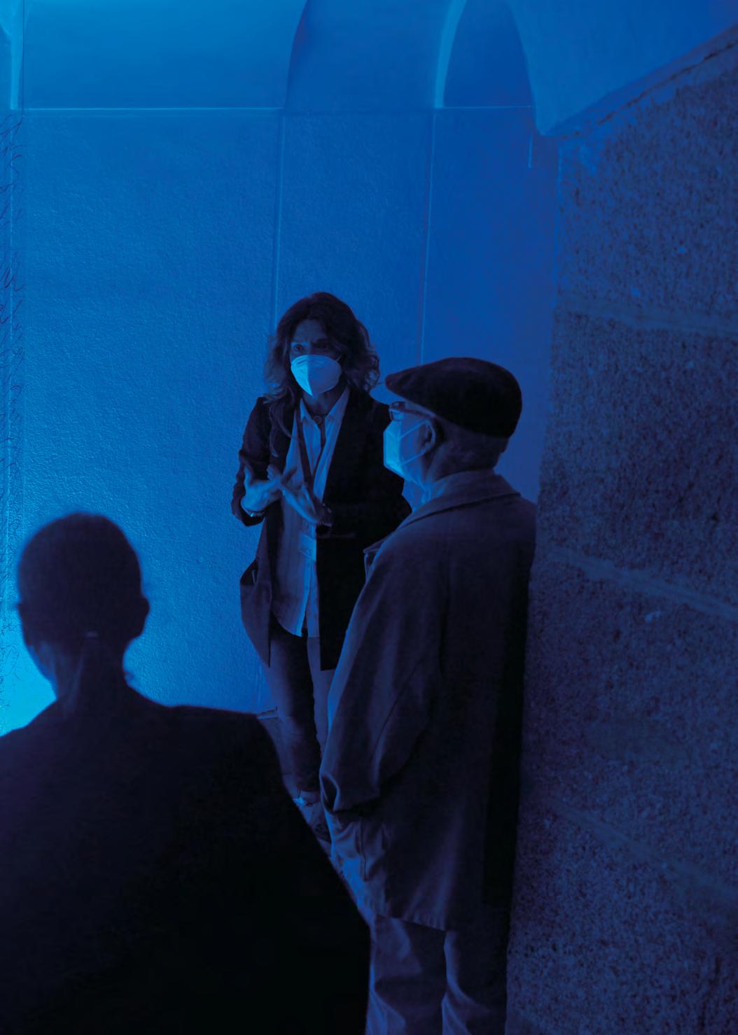 se centró en la escena contemporánea y sus relaciones con diferentes procesos so ciales, históricos y culturales, así como con transformaciones e innovaciones tecnoló gicas, y Niño de Elche. Auto Sacramental Invisible. Una representación sonora a partir de Val del Omar, una invitación del Departamento de Colecciones al artista Niño de Elche para interpretar la obra de José Val del Omar, autor de referencia para el Museo, y que se enmarca en la voluntad de estudiar y activar los fondos de la institución des de el presente. El arte sonoro también estuvo presente en la exposición monográfica Concha Jerez. Que nos roban la Memoria, dedicada a esta pionera del arte performa tivo en España, galardonada con los premios Nacional de Artes Plásticas y Velázquez, y que planteó una lúcida reflexión sobre la Memoria Histórica, la censura y el olvido. En las sedes del Parque del Retiro se presentaron las muestras Anna-Eva Bergman. De norte a sur, ritmos, en el Palacio de Velázquez, la cual indagó en los diálogos y simili tudes plásticas entre los paisajes del norte y el sur, en concreto de Noruega y España, y Petrit Halilaj. A un cuervo y los huracanes que, desde lugares desconocidos, traen de vuelta olores de humanos enamorados, exposición en el Palacio de Cristal con la que el Museo reabrió sus puertas después del confinamiento, cuya reflexión en torno a los cuidados, la hospitalidad y la ecología no pudo resultar más pertinente en el contexto de la pandemia.