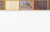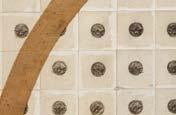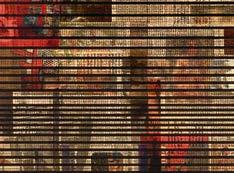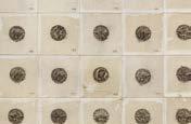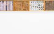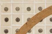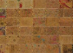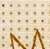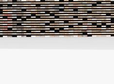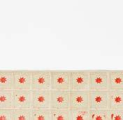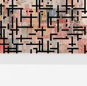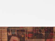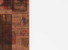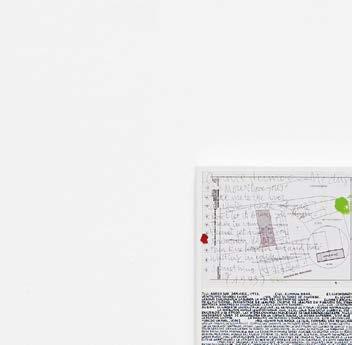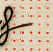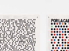 The transfers between studio and factory are manifest in works like Goethe dice (Goethe Says, 1991), a series of canvases where he embroiders di erent phrases attributed to the German author on geometric figures that appear to shift and mutate on the canvas, or in Wie Gefällst Du Dir Besser (1991), a group of images employing photographs of the interior of a car factory, upon which the artist superimposes a geometric form that he associates with “black mirrors.” This is the moment when he establishes di erent practices that mark his later activity: the serialized repetition of the image, the accumulation of archive material, and the increasingly evident incorporation of text into his works. Pieces like Juan Carlos I, Spanish King (1989), Red Party of Twilight (1989), Country and Flag (1989), and Christian Mountains (1989) are formulated on the basis of copying almost identical images (though they always include imperceptible variations) from which he constructs the background of his canvases. To give an example of this procedure, Juan Carlos I, Spanish King reproduces the face of the former king of Spain through the frottage of a 25-peseta coin on ten-by-ten-centimeter notes numbered from 1 to 600. These papers are gummed onto the canvas to generate a network that functions as a support for a new image-drawing. The same occurs in other paintings of this series, though the motifs used are di erent. The flag of the Red Party of Twilight, with an eight-pointed star on it, is reiterated in Red Party of Twilight, or he repeats a schematic figure, almost a hieroglyphic that the artist associates with Mount Calvary, in the work entitled Christian Mountains.