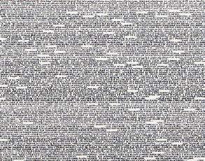 Siguiendo con esta tendencia a la repetición en su obra, la escritura de Woolf reaparece en 1993 como parte del elenco de autores incluidos en un pequeño catálogo publicado con motivo de una exposición realizada en la Casa de Cultura de Aranda de Duero con el título de Un nenúfar en el pulmón derecho11, un enunciado que en esta ocasión procede del escritor Boris Vian. En dicha publicación se incluyen episodios de obras de Isidore Ducasse (Los cantos de Maldoror), William Burroughs (El almuerzo desnudo), Truman Capote (Música para camaleones) y André Malraux (Antimemorias), además de los ya mencionados de Woolf (Las olas) y Cortázar (Rayuela). Copiar el texto como un amanuense se convierte así en un modo de acercarse a la literatura, que en nada se asemeja a la lectura habitual de un libro. Se trata de una experiencia irrepetible, determinada por la serie (limitada) de movimientos efectuados por el artista para reproducir textos en las superficies de sus piezas. Una operación de transferencia que “provoca una lectura que requiere de un ritmo distinto, que transforma por completo la interpretación de lo escrito”12.