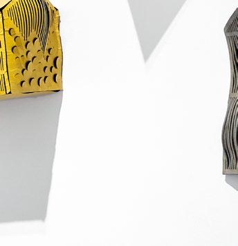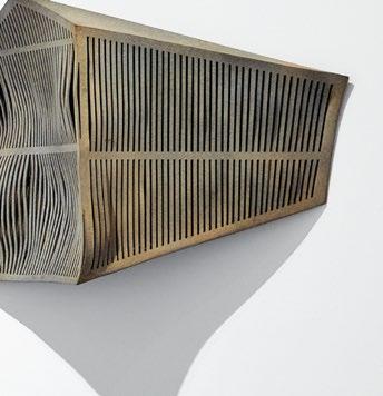 su compañero Manuel Barbadillo, que combinaba y ordenaba los módulos por traslación, Sevilla los montaba y superponía, ahondando en la configuración de un “ritmo estático”7. No obstante, el uso cuidado del color y, sobre todo, de los materiales industriales, acentuaban las posibilidades vibrátiles. El módulo, realizado en metacrilato, rotaba y, por su transparencia y superposición, la repetición geométrica de la forma, generaba nuevas tonalidades y suaves efectos lumínicos y visuales [pp. 28, 29]