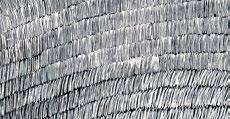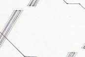 Su participación en el Centro de Cálculo fue clave para establecer sus líneas de trabajo, tanto por la riqueza de los debates y discusiones semanales, como por la definición de los parámetros geométricos por los que discurrirá su obra desde entonces. La computadora le permitió trabajar a partir de un “sistema exhaustivo de las posibilidades de combinación” desde un módulo dado, lo que reafirmaba su consideración de la pintura como un proceso ante todo de investigación16. No obstante, también le mostró los límites de una tecnología y unos medios todavía poco preparados para el trabajo autónomo del artista, que necesitaba del concurso constante del técnico informático: “Con la máquina pasaba una cosa, que me di cuenta que realmente no era mi sistema, porque veía que era lentísimo. A mí me daban una cosa y yo pensaba que podía hacerlo mucho más rápido a mano…”17. Aun así, Sevilla dedicó una parte de su tiempo en el Centro de Cálculo a sentar las bases de sus obras futuras. Las investigaciones fundamentadas en la combinatoria y los problemas modulares desembocaron en la concentración de la línea, creando mallas de hexágonos o formas geométricas; tramas estructuradas según un ritmo ágil que vertebra la composición.