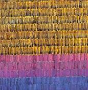 Soledad Sevilla’s installations have sometimes constituted the starting point for a new pictorial cycle, as is the case of En ruinas (In Ruins), which originated in Mayo 1904–1922, produced at the Vélez Blanco Castle, in Almería. This fully abstract series reflects the influence of Mark Rothko on her oeuvre and anticipates the interest in landscape and nature that was to mark her work from the late 1990s onward. Such interest also surfaces in works like Apamea and Insomnios (Insomnias), as well as in more recent