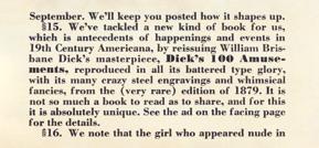 Higgins’s enthusiasm extended to reviving obscure figures—all but unknown in the 1960s—whose work he considered relevant to contemporary practices. An example of this tendency is William Brisbane Dick’s anthology of amusements for social gatherings, Dick’s 100 Amusements (1879, reissued 1966), which the Press promoted as a precursor of happenings and Fluxus. Dick was a key exponent of nineteenth-century Americana, and, like Higgins, he owned a publishing house, Dick & Fitzgerald. A related impulse of drawing the past into the present saw historical avant-garde works interspersed throughout anthologies of contemporary projects. For instance, in Fantastic Architecture (1970)—the compendium of utopian architecture proposals