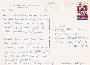 eventually decided against) was “Fluxus Annex”; see Higgins, letter to Jeff Berner, photocopy, August 22, 1966, box 31, folder 4, Jean Brown Papers, Getty Research Institute.