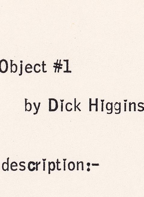 2 Dick Higgins, “About My Intermedia Object #1,” unpublished note dated January 28, 1995, box 19, folder 20, Dick Higgins Archive, McCormick Library of Special Collections, Northwestern University.