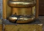 Fotografía. Detalle de faltantes de base de preparación de la talla de madera.