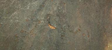 Fotografía Detalle del faltante de soporte tela que fue resanado. Se observa la diferencia de textura y color.