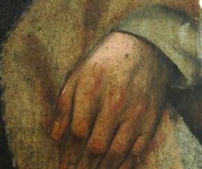 Fotografía Faltantes de capa pictórica en la mano derecha.