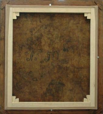 Fotografía Reverso de la obra. Se observan las manchas de humedad y la acumulación de suciedad.