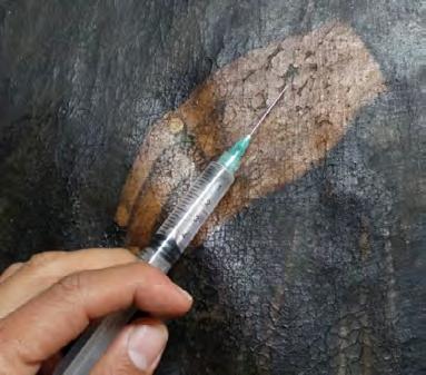 3. Consolidación de la capa pictórica (filtración de adhesivo en craquelados)