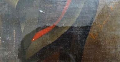 Fotografía. Detalle del craquelado y los faltantes de capa pictórica.