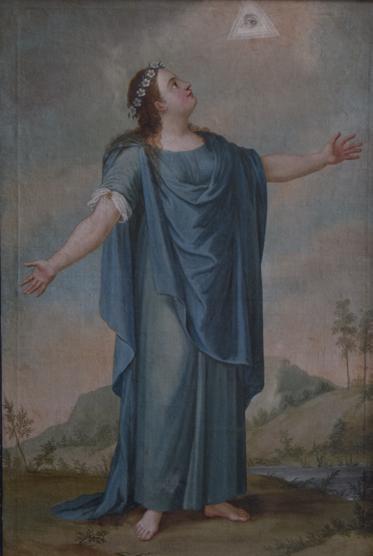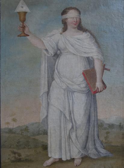 Otra modificación introducida por el Instituto, que cambia nuestro entendimiento de las obras, tiene que ver con la identificación de cada alegoría y su vinculación directa con la masonería. Las pinturas fueron restauradas en el 2019 y, según los informes de este proceso que conserva el área de Gestión de Museos del ICC, las tres virtudes teologales y la virtud cardinal fueron reconocidas por sus gestos y atributos. En cambio, su asociación masónica no está claramente definida. Seguramente reside en el hecho de que los masones adaptaron, a veces con el mismo significado, elementos cristológicos y cristianos como lo son la Caridad, la Fe, la Esperanza y el Delta (López, 2009, pp. 25, 28), presentes en estas pinturas. Esta suposición, al igual que la anterior, sigue siendo estudiada por el área de Gestión de Museos del ICC.