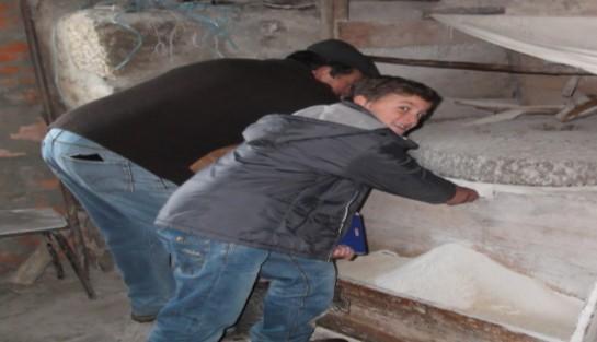 Em meados de 1900, também existia no mesmo local um outro moinho. Um deles moía só trigo (o moinho de Alveiro), o outro moía milho. A partir de 1990 passou a existir apenas o moinho do milho. Hoje mói milho, cevada, centeio e castanha. O moinho trabalha à força da água. Essa água vem do ribeiro Bestança. O que faz com que a mó trabalhe é o penado. O milho seca no canastro e, de seguida, levam-no para a eira para ser malhado com o mangual. Já em grão é guardado numa caixa grande em madeira. Depois é moído no moinho até ficar em farinha. Esta farinha é usada principalmente para fazer pão, papas e bola, no entanto há pessoas que a usam para outras coisas. A parte de dentro da espiga do milho chama-se carolo. Este é muito áspero e tem marcas do milho.