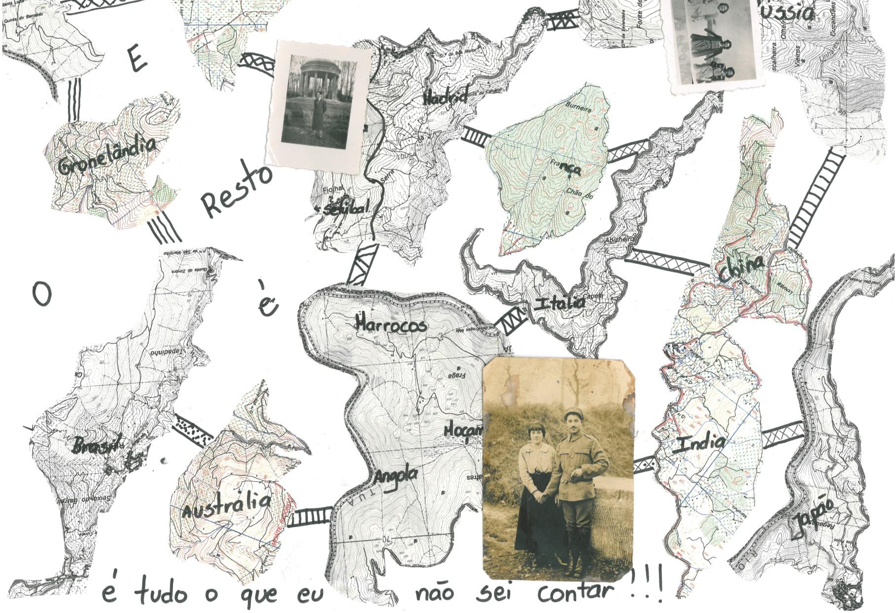 – Referências a momentos de trabalho das BIOS – construção | movimento| teatro | som | arquitetura paisagista e dos materiais aí usados (matérias vegetais, fitas de obra, cartão canelado, cartas militares, fotografias...).