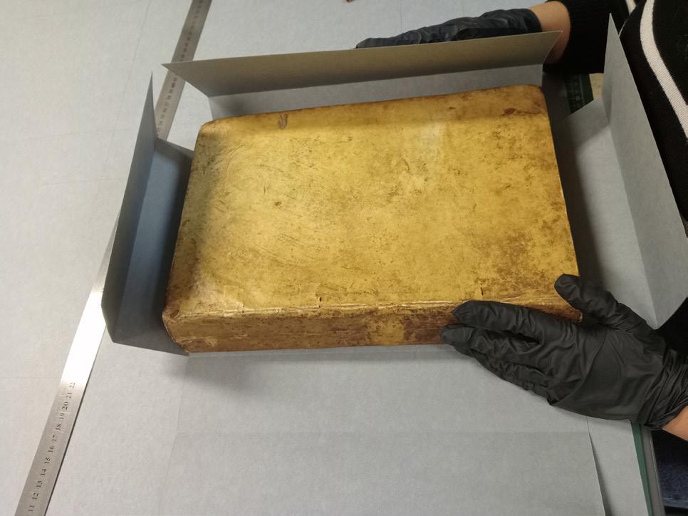 Só depois de higienizados os livros são digitalizados, ao que se segue a produção de capas à medida, em cartão livre de ácidos, e com a cota arquivística identificada na lombada.