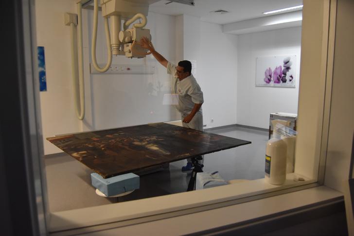 Neste caso, o exame permitiu detetar a existência significativa de pintura original subjacente a vários repintes grosseiros, que desvirtuam a pintura, o que justifica o seu levantamento/eliminação por limpeza química. Por outro lado, possibilitou também documentar a existência de “arrependimentos” do autor, bem como