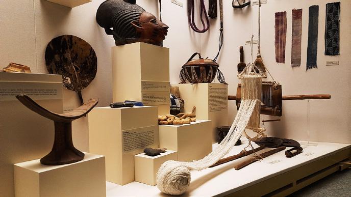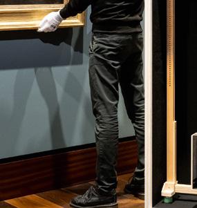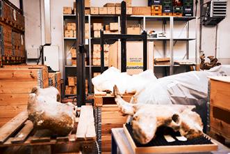 Linke Seite: Zwischenlagerung von Exponaten bei der Ausstellungsvorbereitung