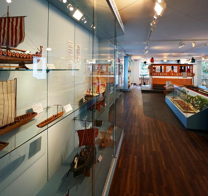 delle, die die Entwicklung vom einfachen Einbaum bis zum modernen Schubverband nachzeichnen. Besucher erfahren, wie sich die Lademöglichkeiten und Schiffsgrößen im Laufe der Jahrhunderte veränderten - von kleinen Booten und Flößen über die Ära der Segelschiffe bis hin zur Dampf- und Maschinenschifffahrt. Ein beeindruckendes