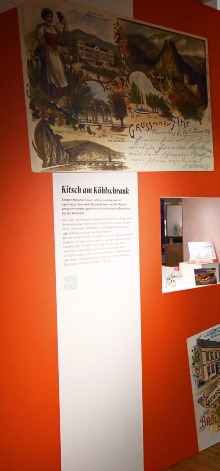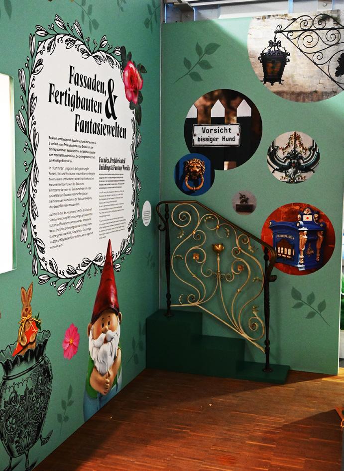 Linke Seite, oben: Ausstellungseinheit zum Thema "Baukitsch"