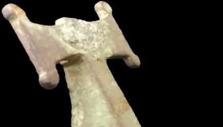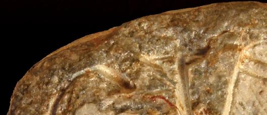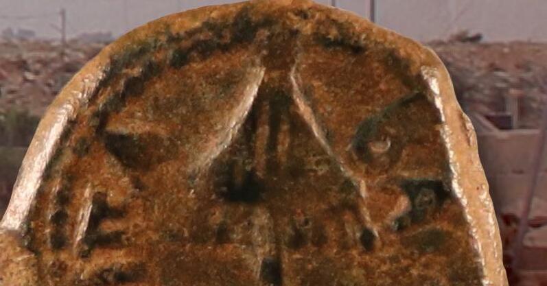 This scarab is inscribed with a falcon-head Sphinx and an ankh, a looped cross which is the Egyptian sign of life. Researchers discovered the scarab in Bronze Age strata, underneath the first century house near the gate.