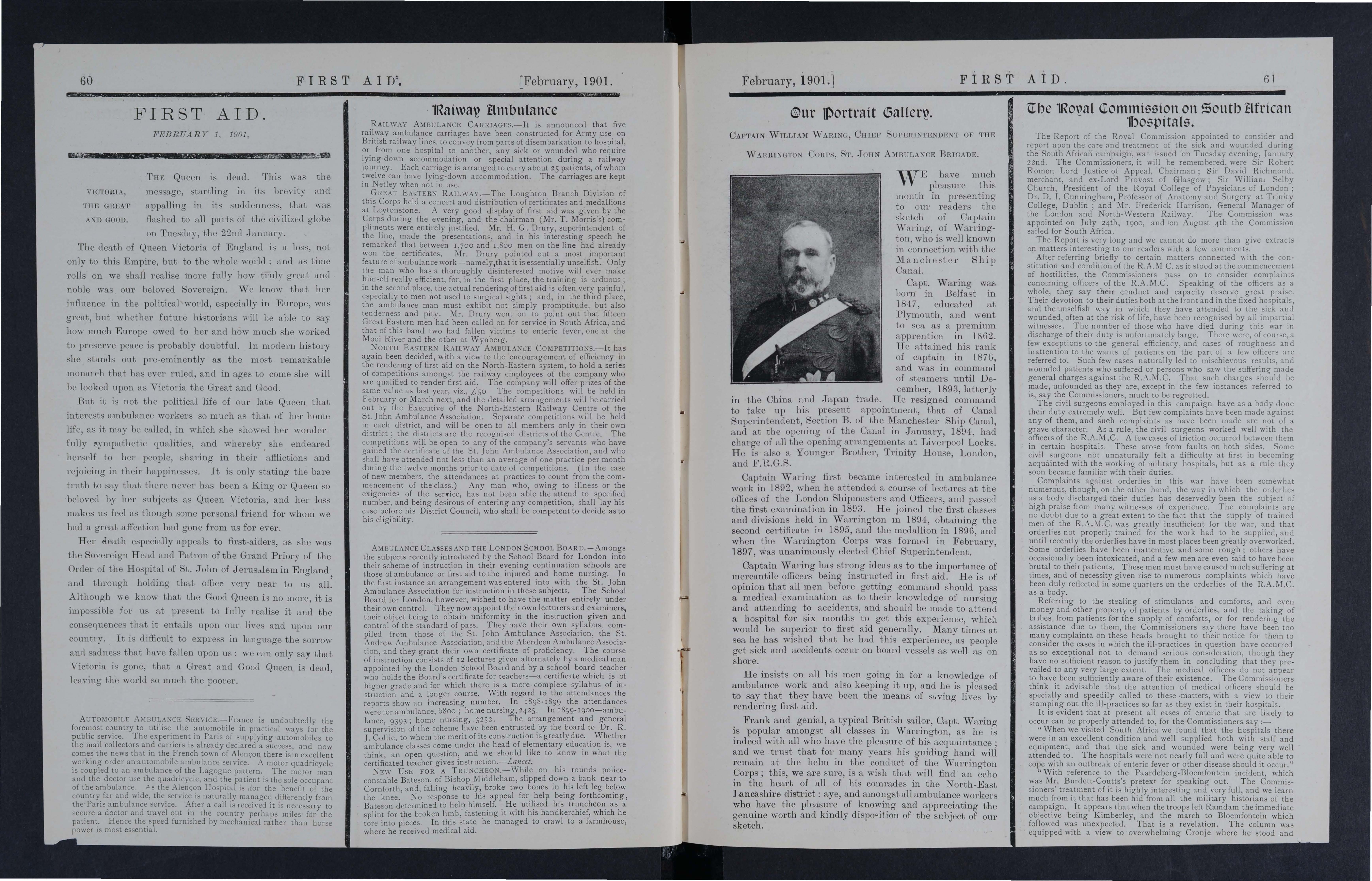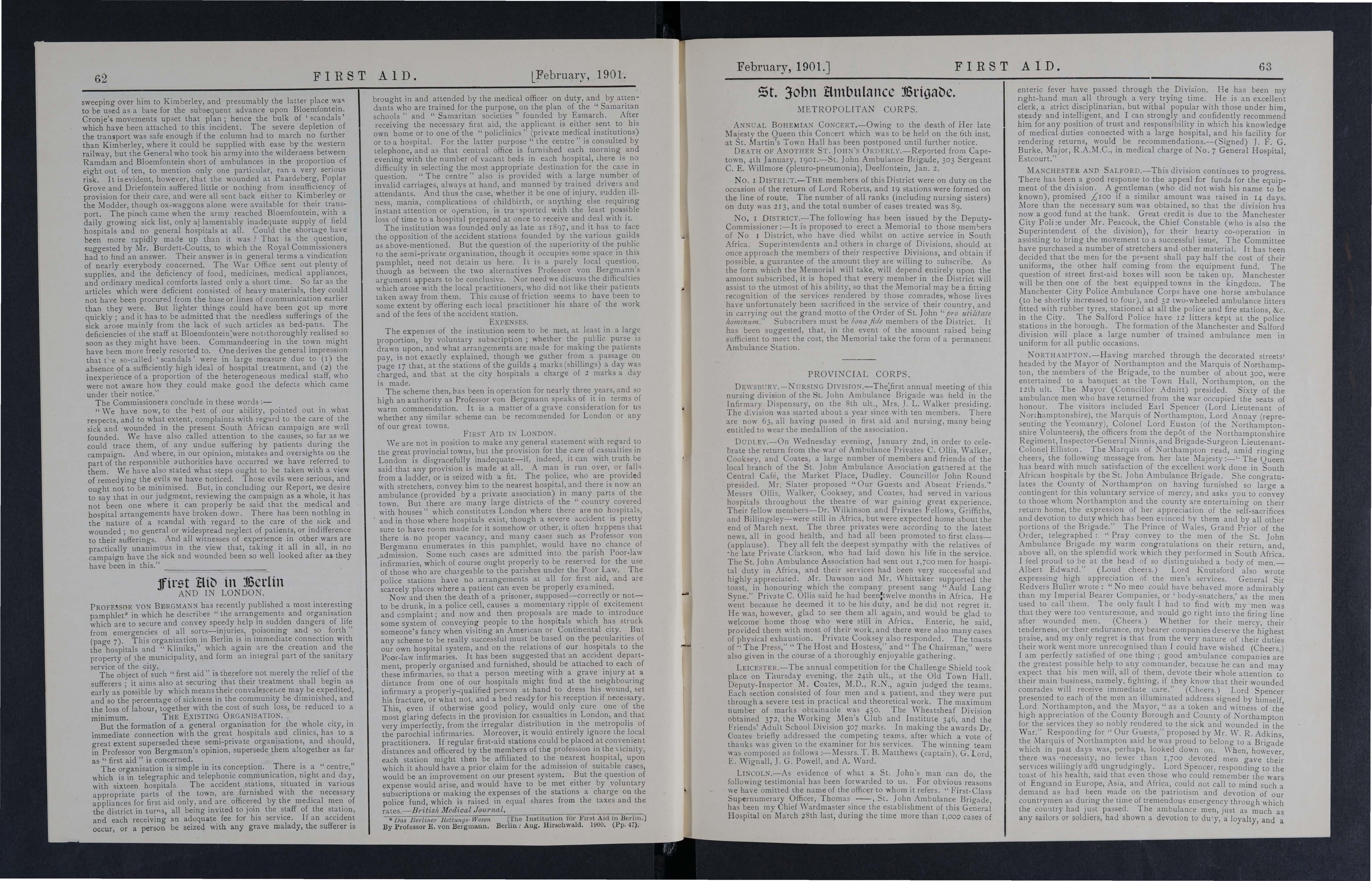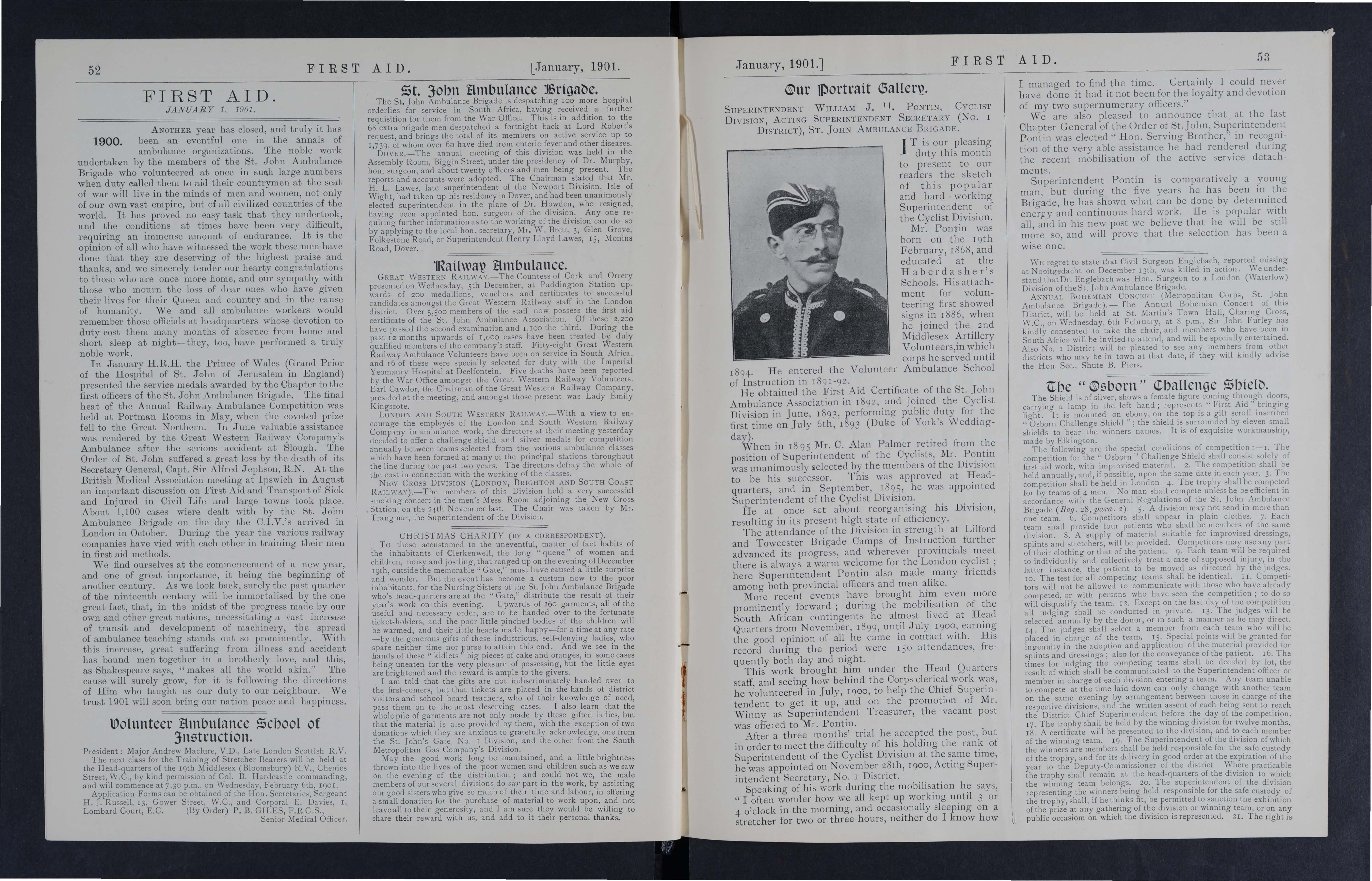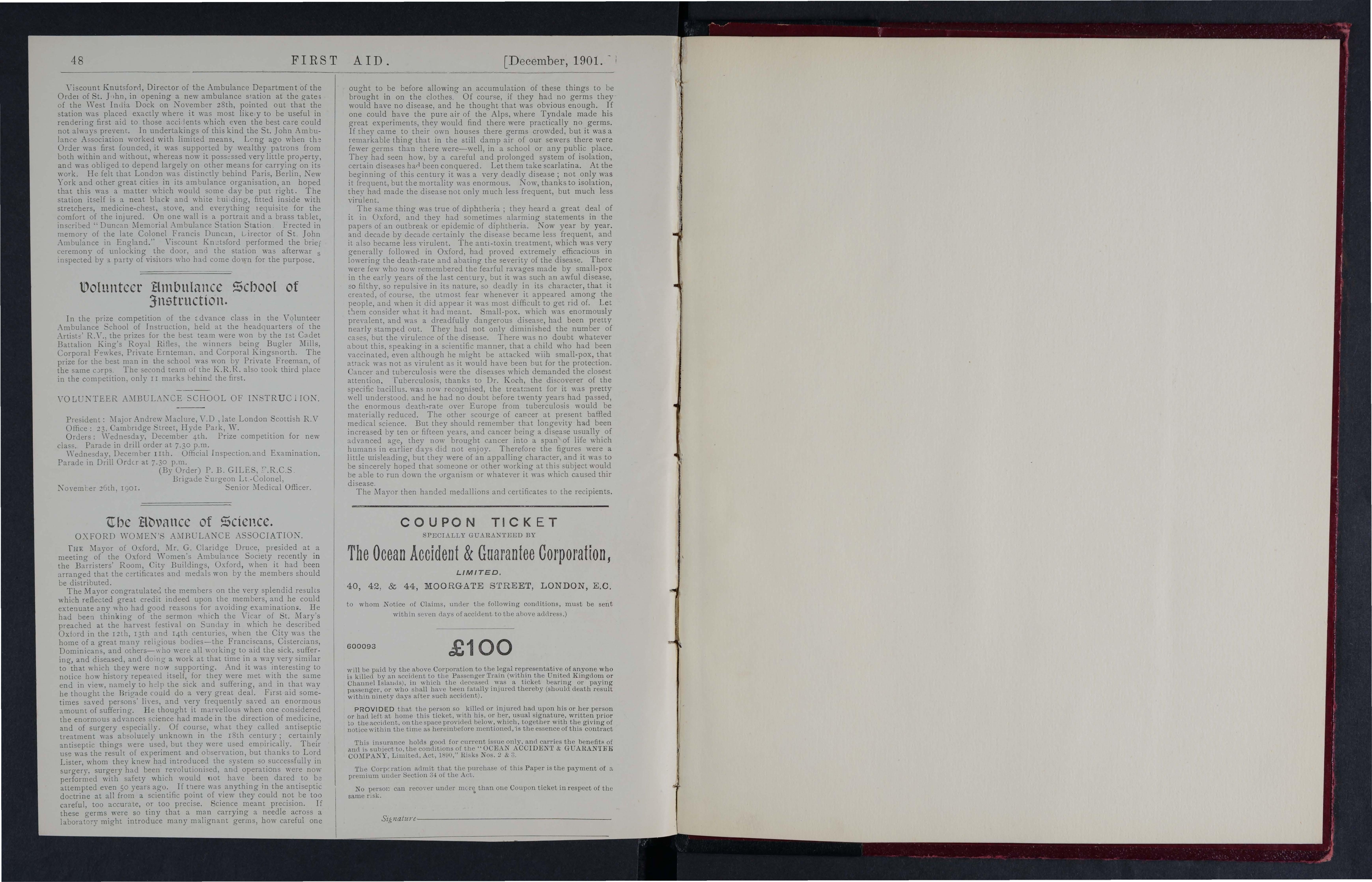 As we back, surely the pa r;t qcuuter of tue nmteenth centul'J WIll be illl11101·t[l.li£cd by the ono great fact, that, in th3 midst of tho pl'ogress made by our own and .oth er great nations, nee essitflting a vast increase of tranSIt and of macl1incry, the spread of ambulance teaclung stands ont so prominently, "With this increase, great sufI'81'ing from ill ness a lld accident has bound men together in a bl'othedy love, and this, as Shakespen,re says, "makes aU the world akin." The cause. will surely grow, fo1' it is following the directions of Hml who taught us our duty to our neiahbou1' . We tl'ust 1901 will soon bring our nation penc e a:Cl happiness