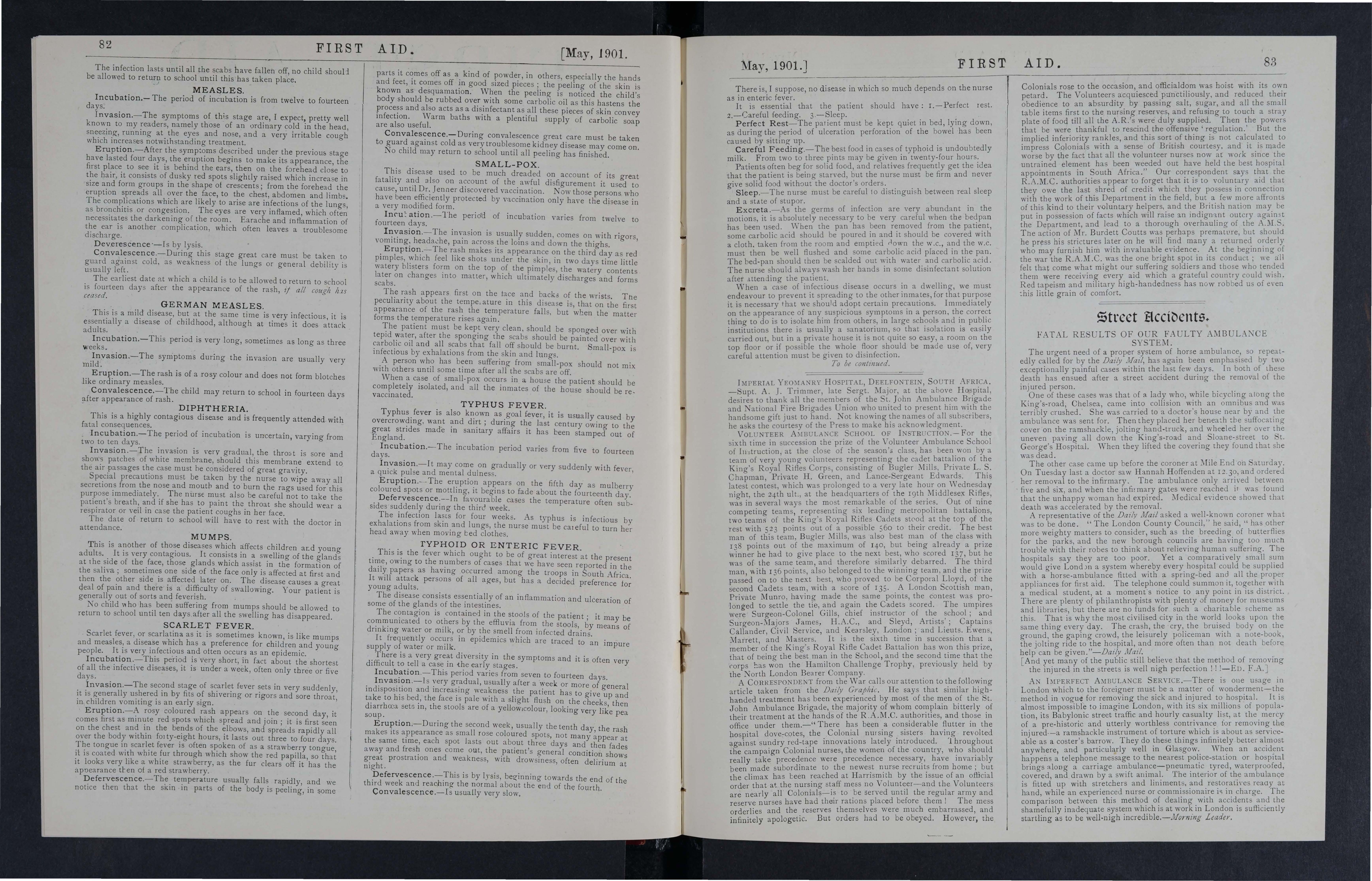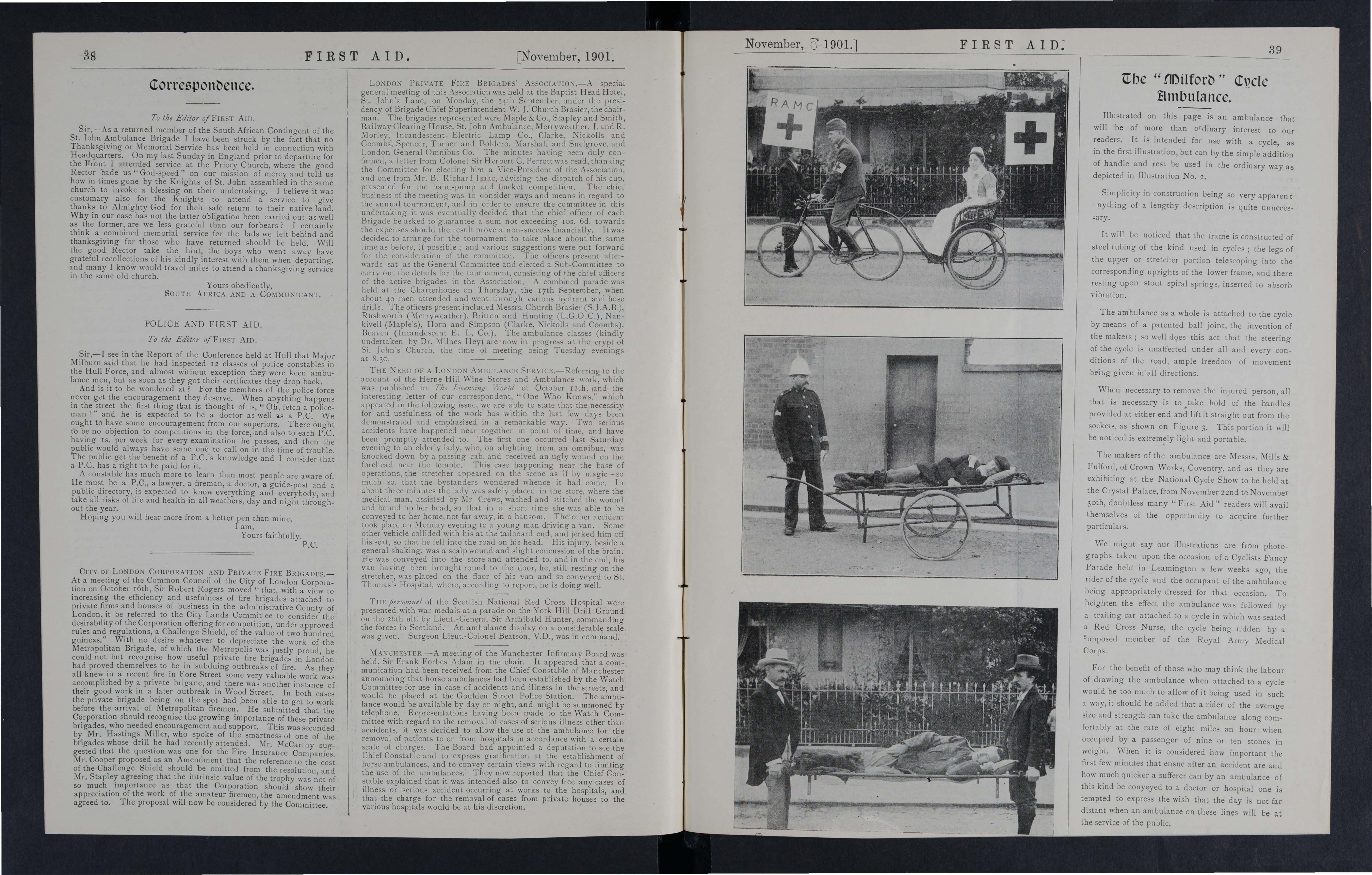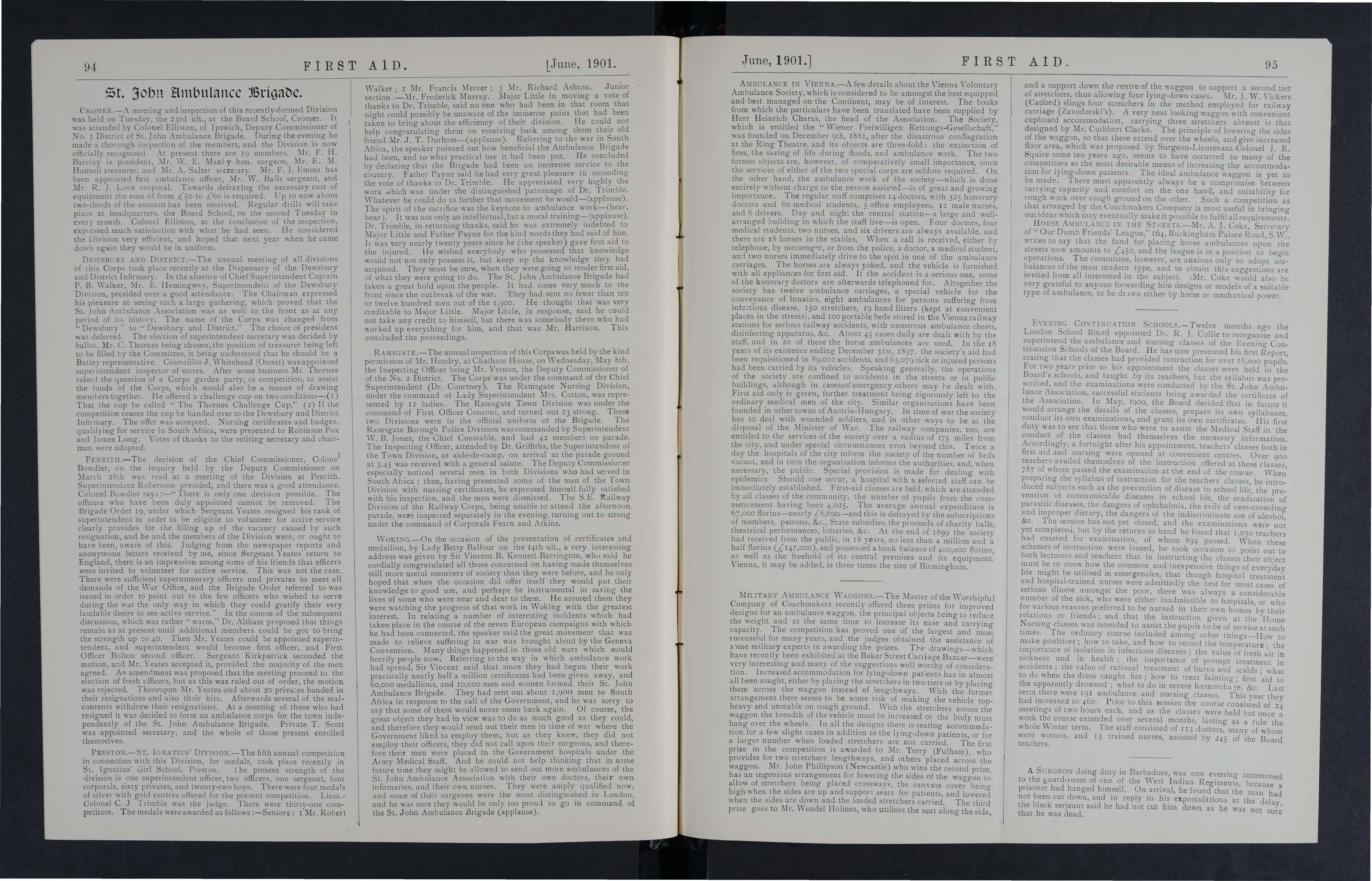I R.-II avinO' read" First Aid" recently, it has led me to take an int'!rest in the service for London. It seems to me, from 13 years personal experience on beats in -orth,. and ? est London thouO'h not a first-aider, that the .\Ietropol!s IS better prOVIded for in the matter of ambulanc e provision, than readers of your Journal miO'ht be led to suppose. undoubtedly, there is room for impr ovement, for"instance, if some inexpensive means c.ould be devised for the police to be able to signa l, o r telephone, for the Ir ambulance from the st.reets, th eir work would h ave a more credita ble appearance of promptItude. :\Iany sergeants do what C,ln to make people comfortable when injur ed in the streets, by puttlllg on the polIce ambulances. The new pattern amb ulance s are a great Impr ovement on old, and duly take their pla(:e as the old ones wear out. If I am III charge of an acc ident case, I always order a blanket to on the ambulance, place the injured person Injured SIde up, o n the blanket lift on ambulance, first taklllg stretcher off wh eel frame. agree w\h you that speci.allitters for accidents only should he kept at poli ce stat ions , and I thlllk that would be found yery useful if kept at the followlllg polIce statIons: - \\ andsworth t We st Dill), Brixton Road, Peckham (High Street), Greenwi.ch (Blackheath R oad), !-Ial:row (Ca rlt on Ham mersmLlh (Broadway), Stoke ;'; eIVll1 gt on (High treet), l\. entlsh Town ( H olmes Roa d) , Bow Road and Scotland Y"rd. Wagons, if kep.t at the named stat ion s would be in direct call by t"legraph WIth 120 polIce sta tion s in London wi tho ut costing an extra penny for communication the remaining 42 stations, not co,unti ng the city , could also si O'.n a I r apid ly. Thi s would saye the many we::try tramps to OUtlYlllg Infirm a ri es, people's &c. 1 en woul? cost the GO\'ernme t much with sheds to put them lll, whIle .lQrses and coac hm e n are for at very 10\\ !'ates. H op ing this may be suitabl e for in ser tion in your interestinO' Journal, and will not tre spass on your space and attention.