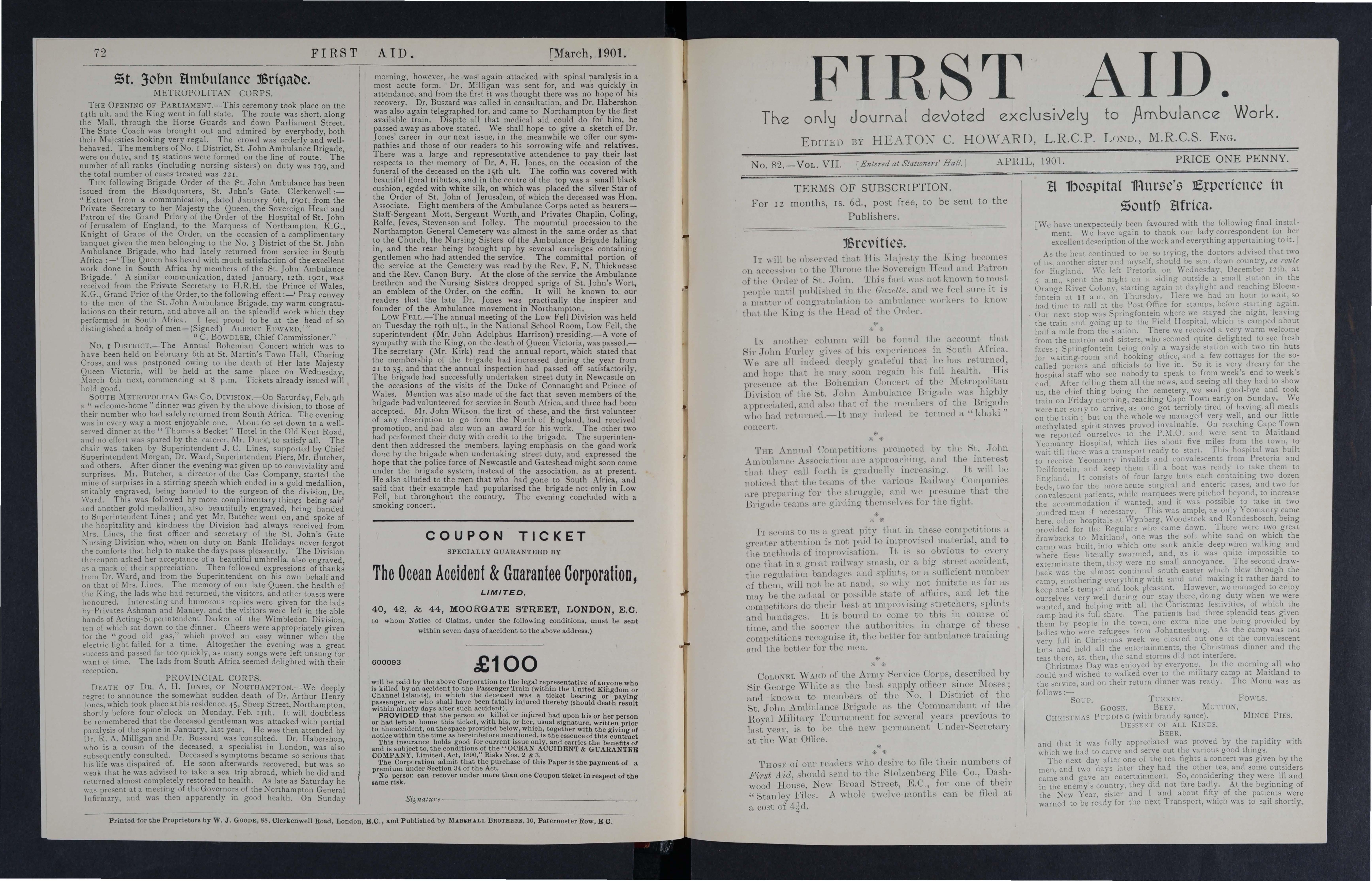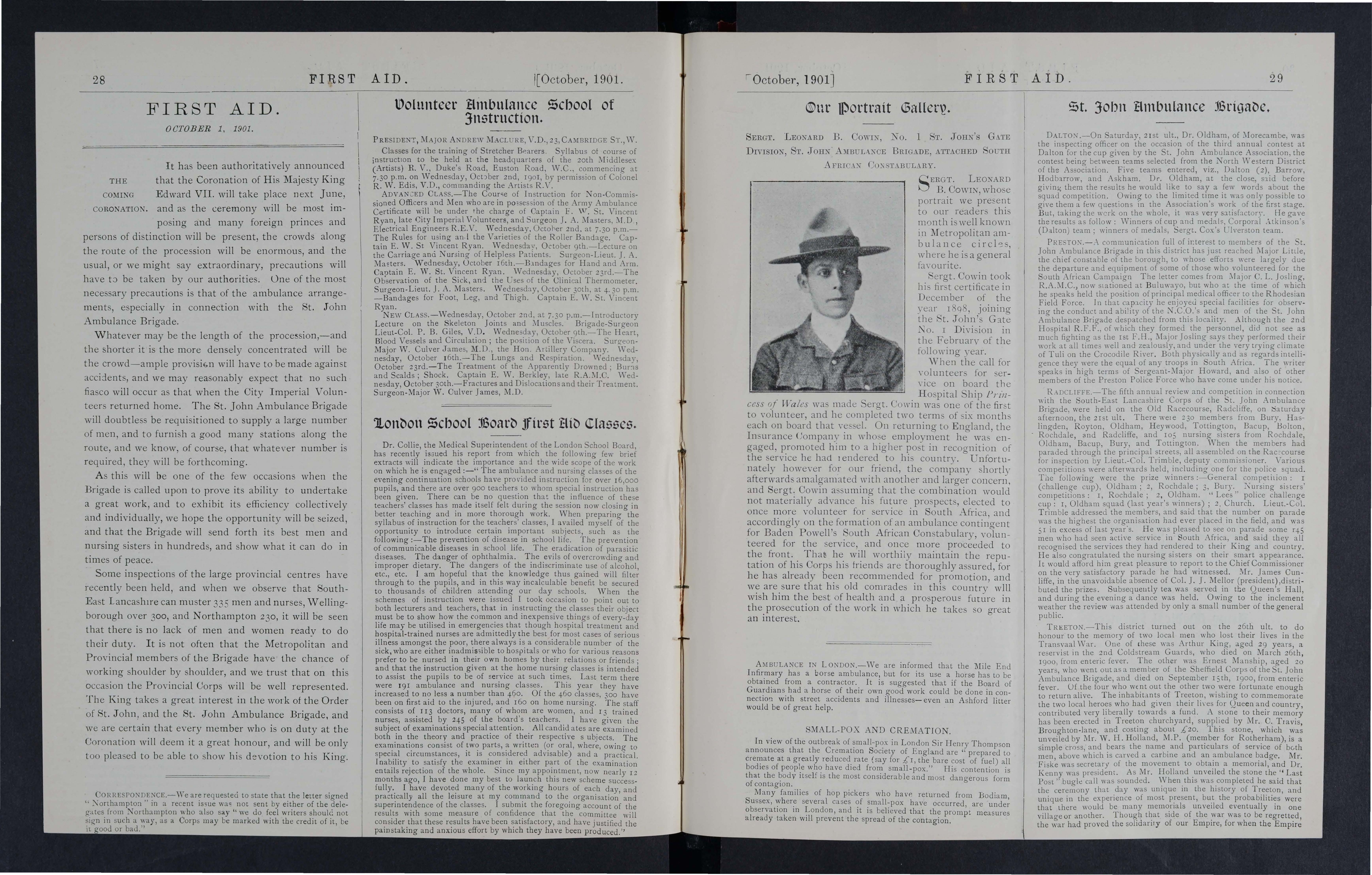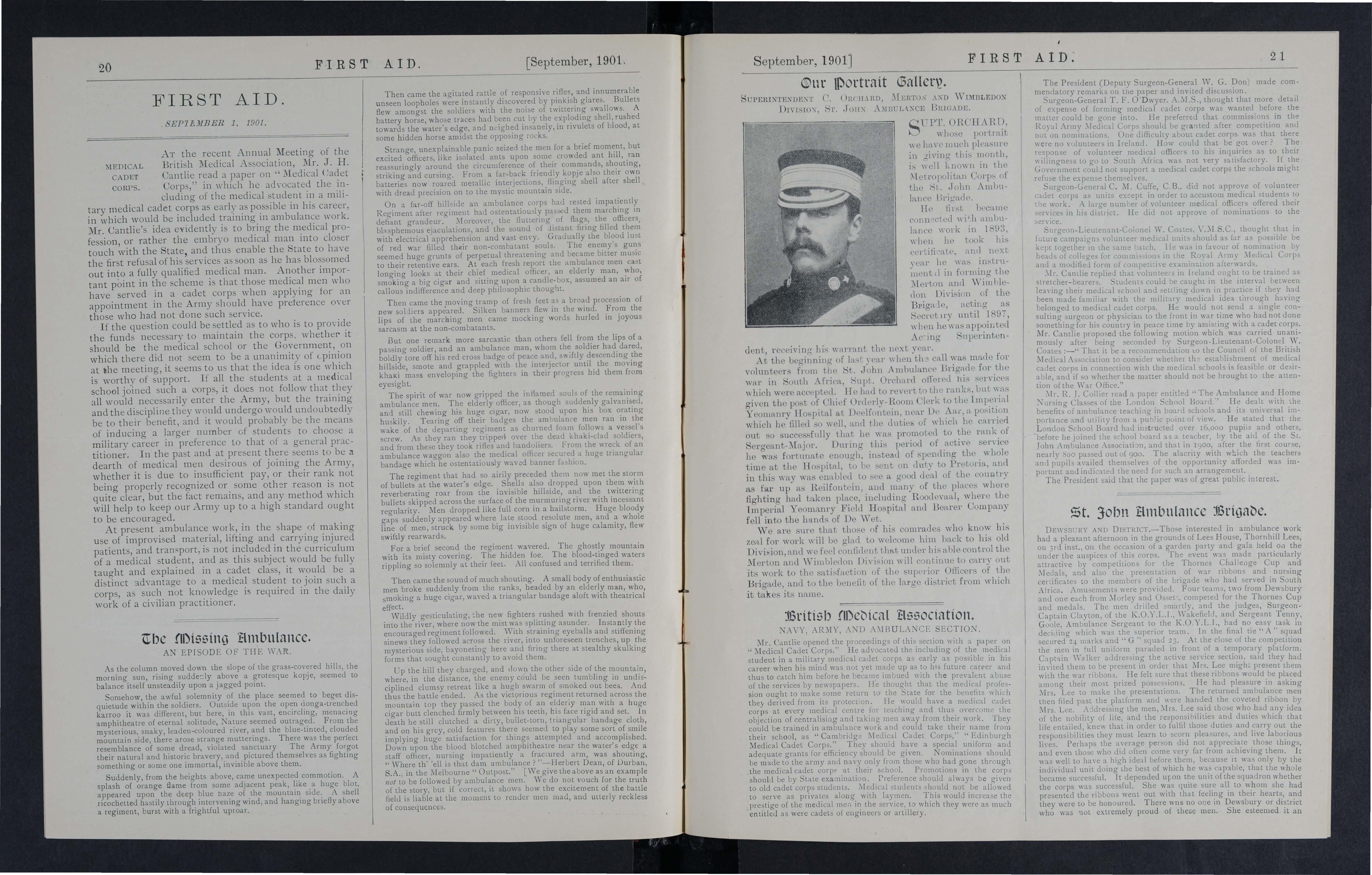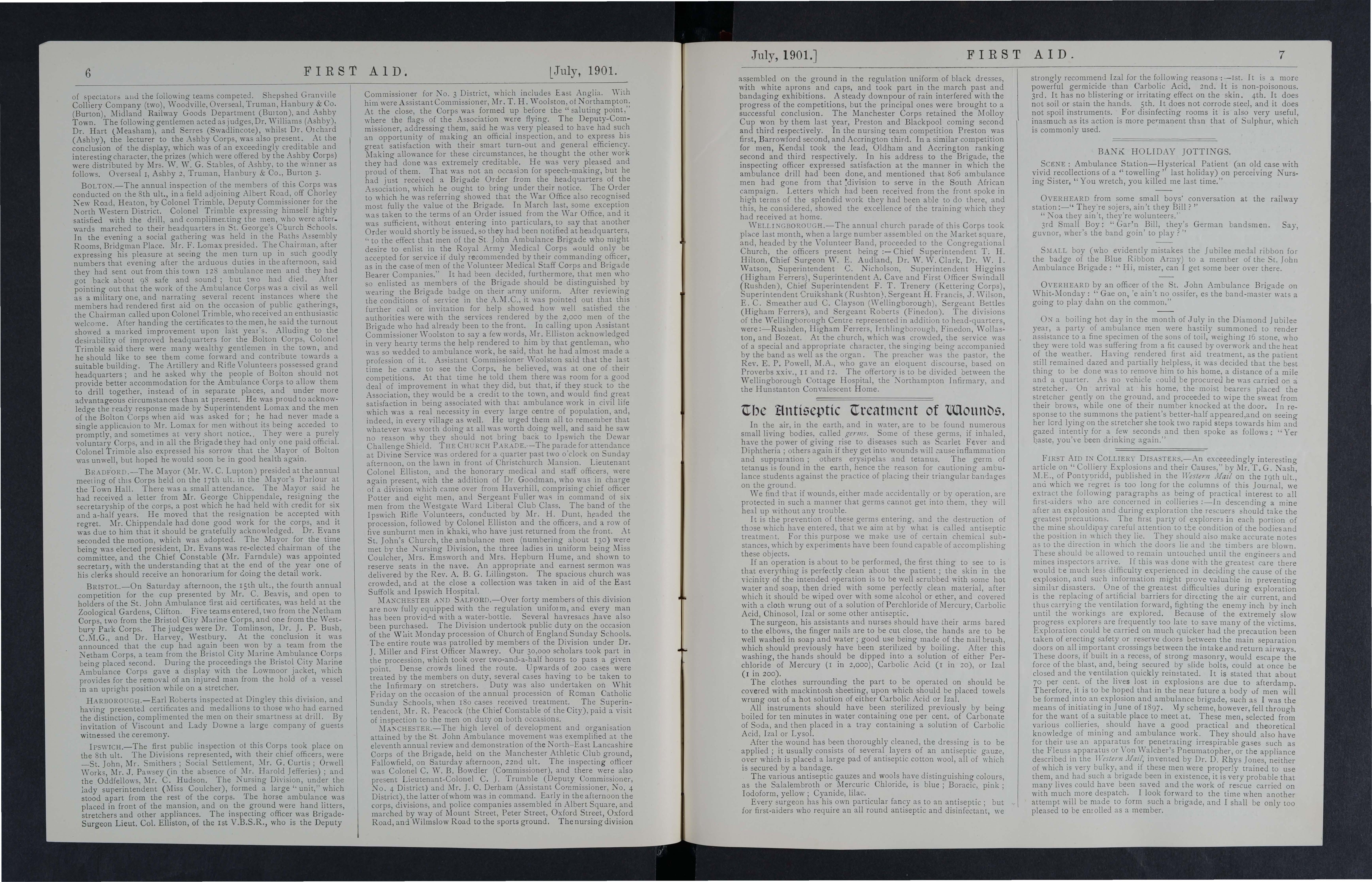 year bas clo eel, a.nd truly it has 1900. been nn eventful one in the annals of ambulnnce organizations. The noble ,york by the members of the St. J ohn Ambulance Brigade who volunteered at once in sucili la.l'ge nUmbel\ when duty caned them to aid their countryUlen at the eat of war will liye in the minds of men and women, not only of our own vast empire, but of all civilized countl·ies of the world. I t has proved no ta k that they undertook, and. t?e cond.itions at time:; have been yery difficult, l'eqUlrmg an ImmenSe amount of endurance It is the opinion of all who ha\-e witnessed the work these men haye done that they are de erving of the highest praise and thanks, and we s incerehr tender our hearty J 0 to those \",ho are once m01'e home. and our sympathy with tho:,e .who the loss of dear ones who haye giyen then' lives fOl' theIr Queen and country and ill the Cl:\use of humanity. We and all ambulance workel's would remembeI' tho e officials at headquarters whose devotion to duty cost them many months of absence from home and short sleep at night-they, too, have performed a tl'uly noble work.