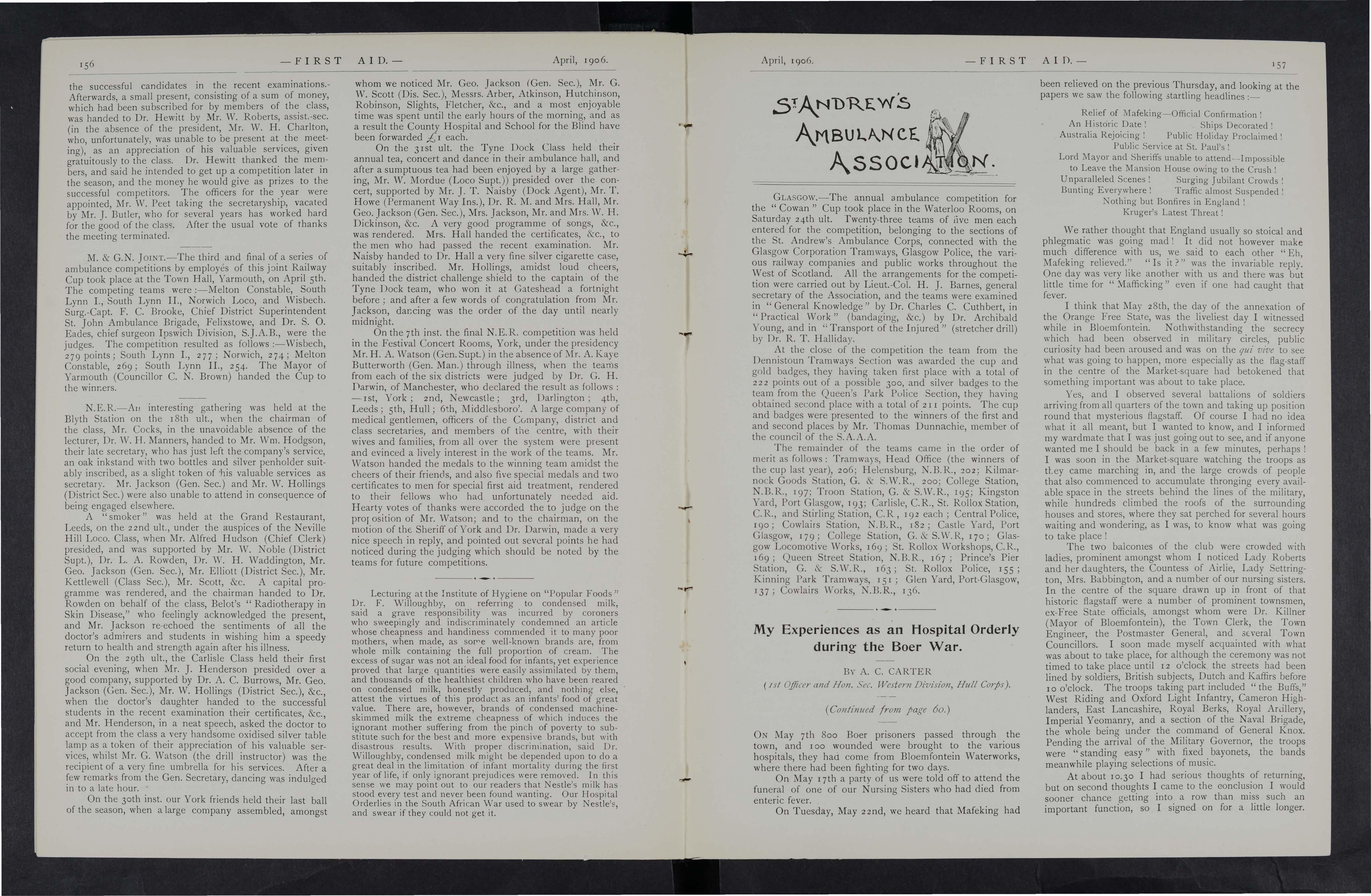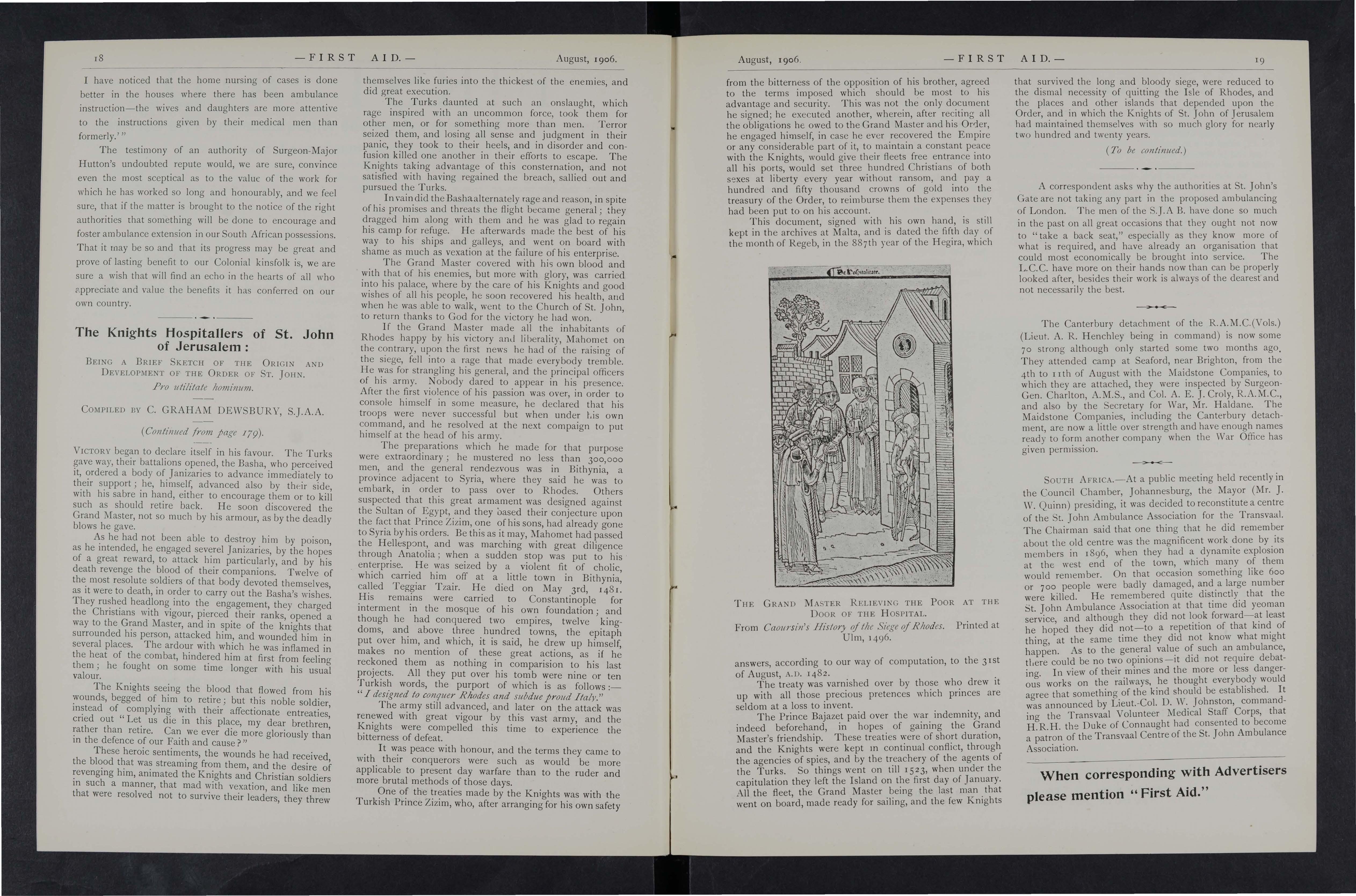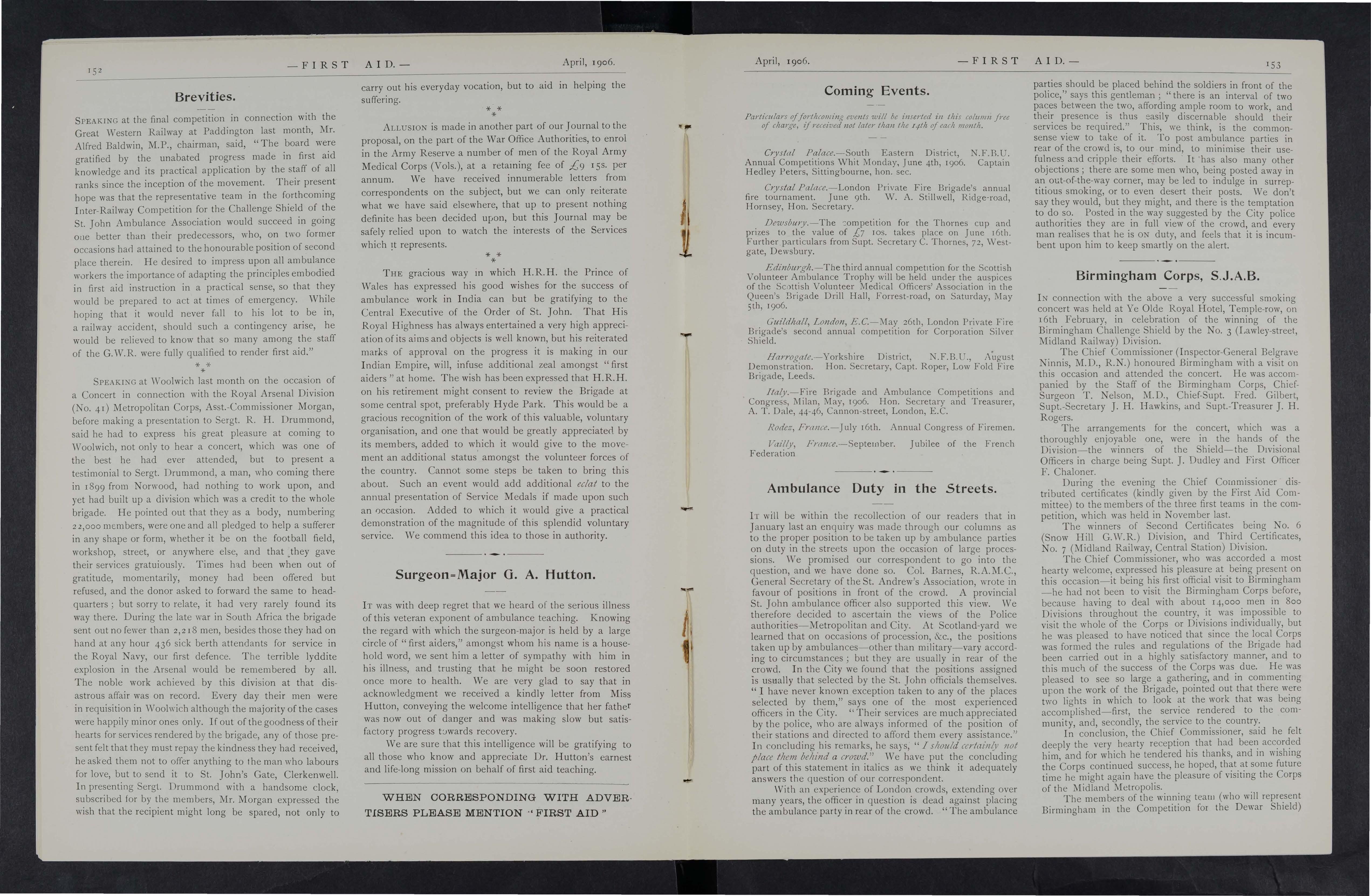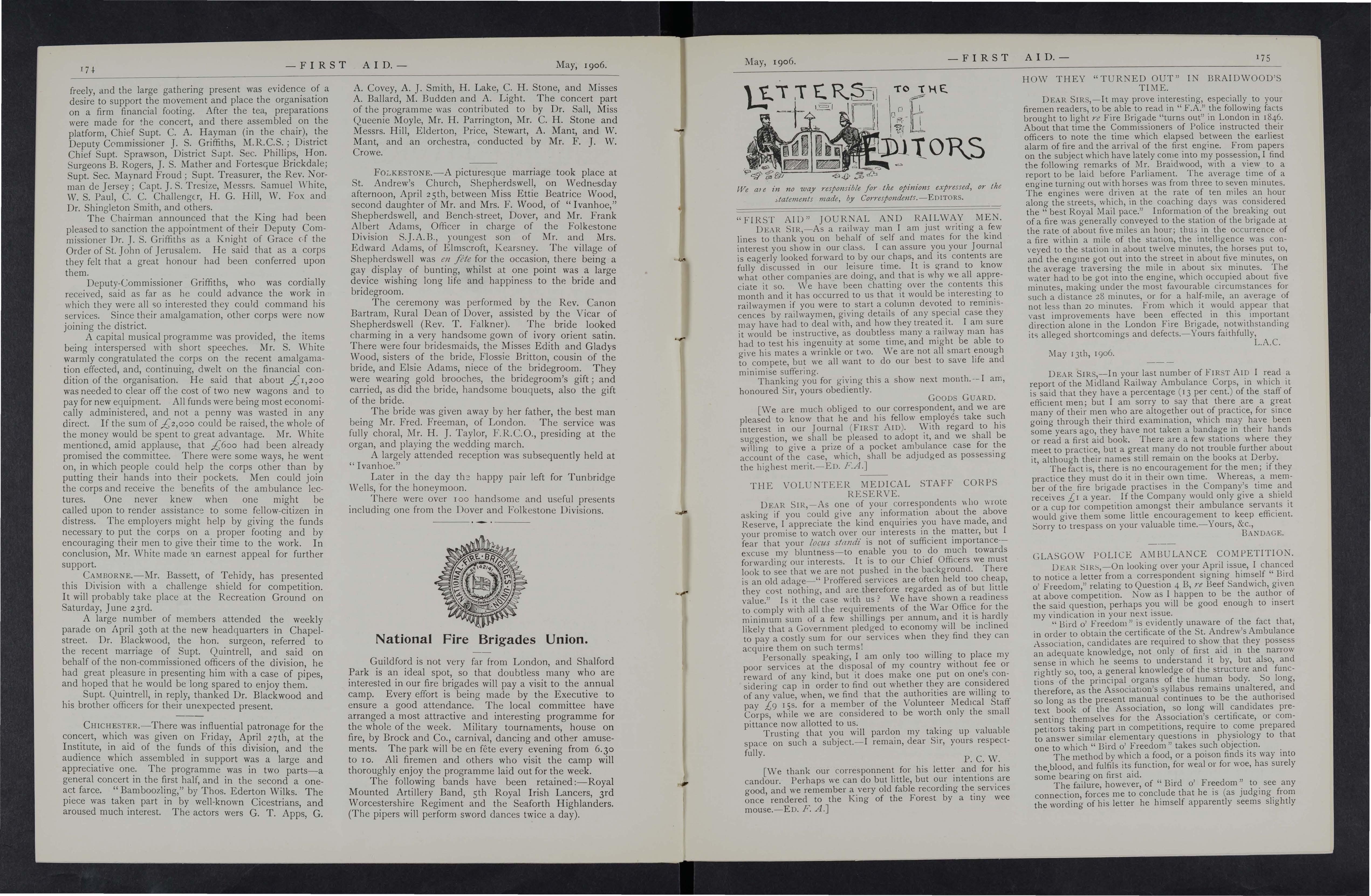As it s the wish and desire of the Proprietors to make this Journal as inst ructive and entertaining as possible, correspondents in all parts of the country are asked to give it all the help they can. Superintendents of Corps and Officers of Division s of the St. John Ambulance Brigade, Officers of the Royal Army Medical Corps (Volunteers), the Volunteer Ambulance School of Instruction, and Chief Officers of Fire Brigades will, it is hoped, do their best to make it known amongst the members of their respective organisations, and will also send for publication their official news and notices. Suggestion s are invited for Prize Competitions and other matters which will advance the interest of the Journal.