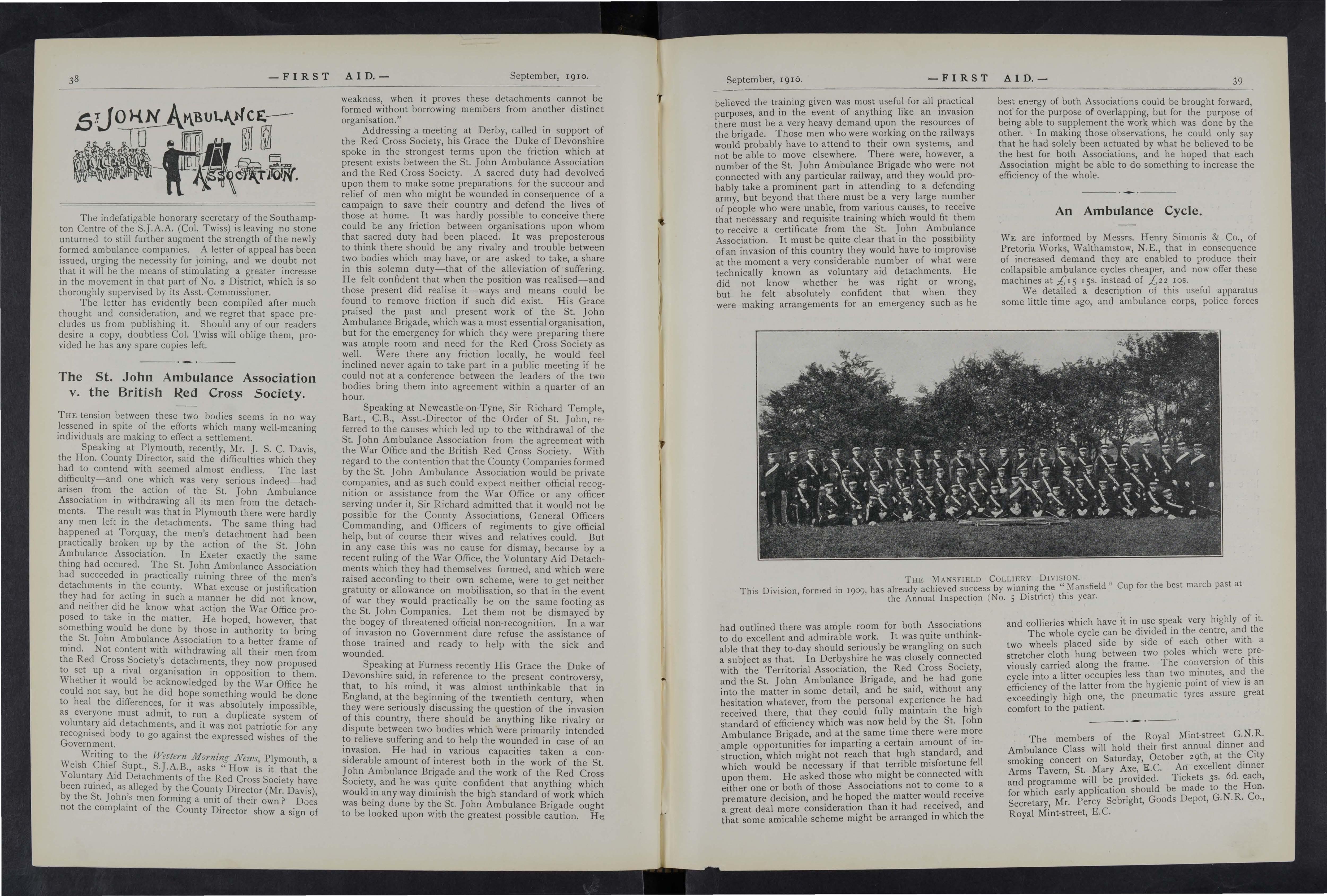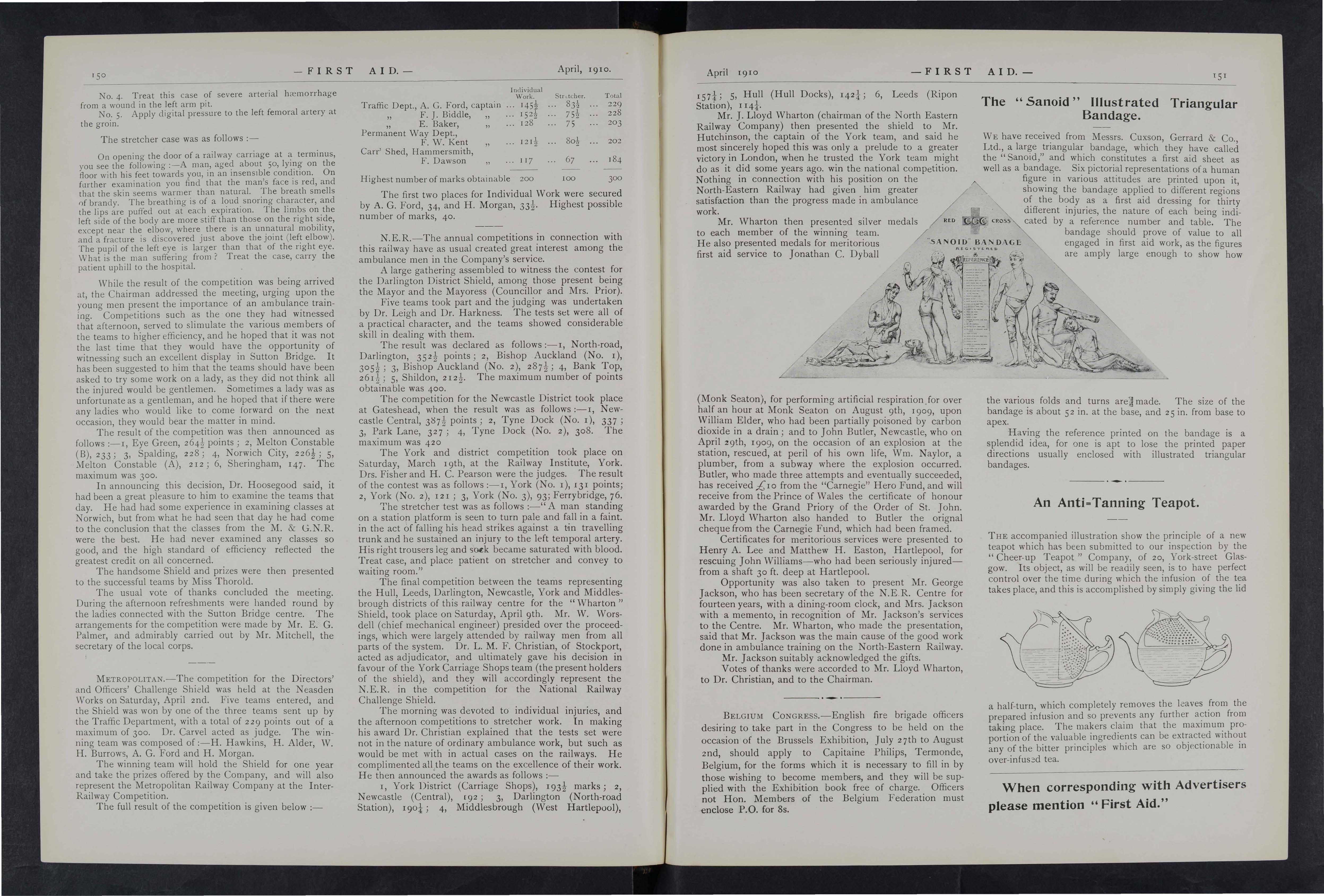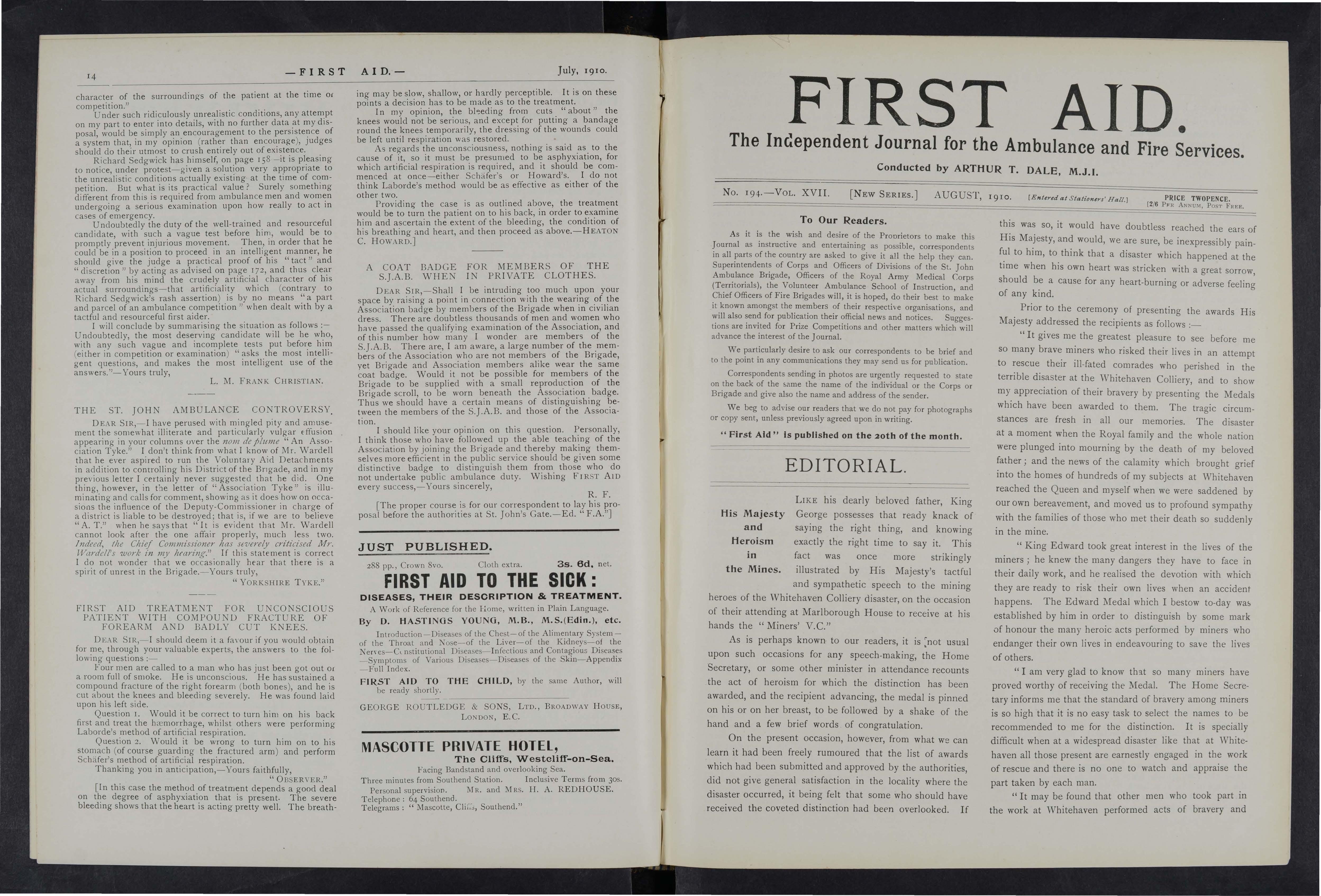 As far as our local press is concerned, I hold that the St. John Ambulance Association and Brigade is deeply indebted to them, as they most obligingly publish any matter sent them on the subject, and thus help to disseminate a knowledge of first aid whi ch individuals cannot possibly do.