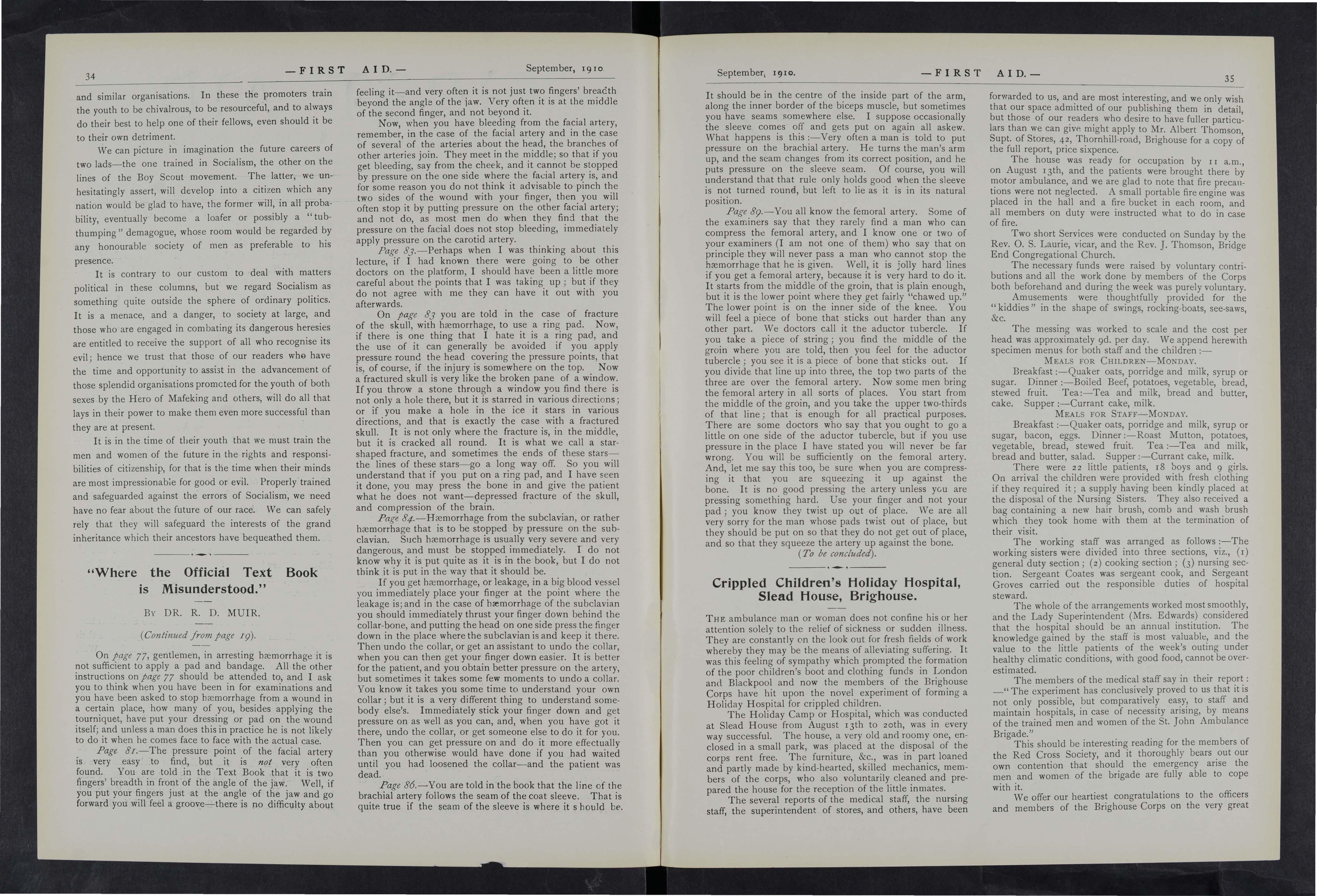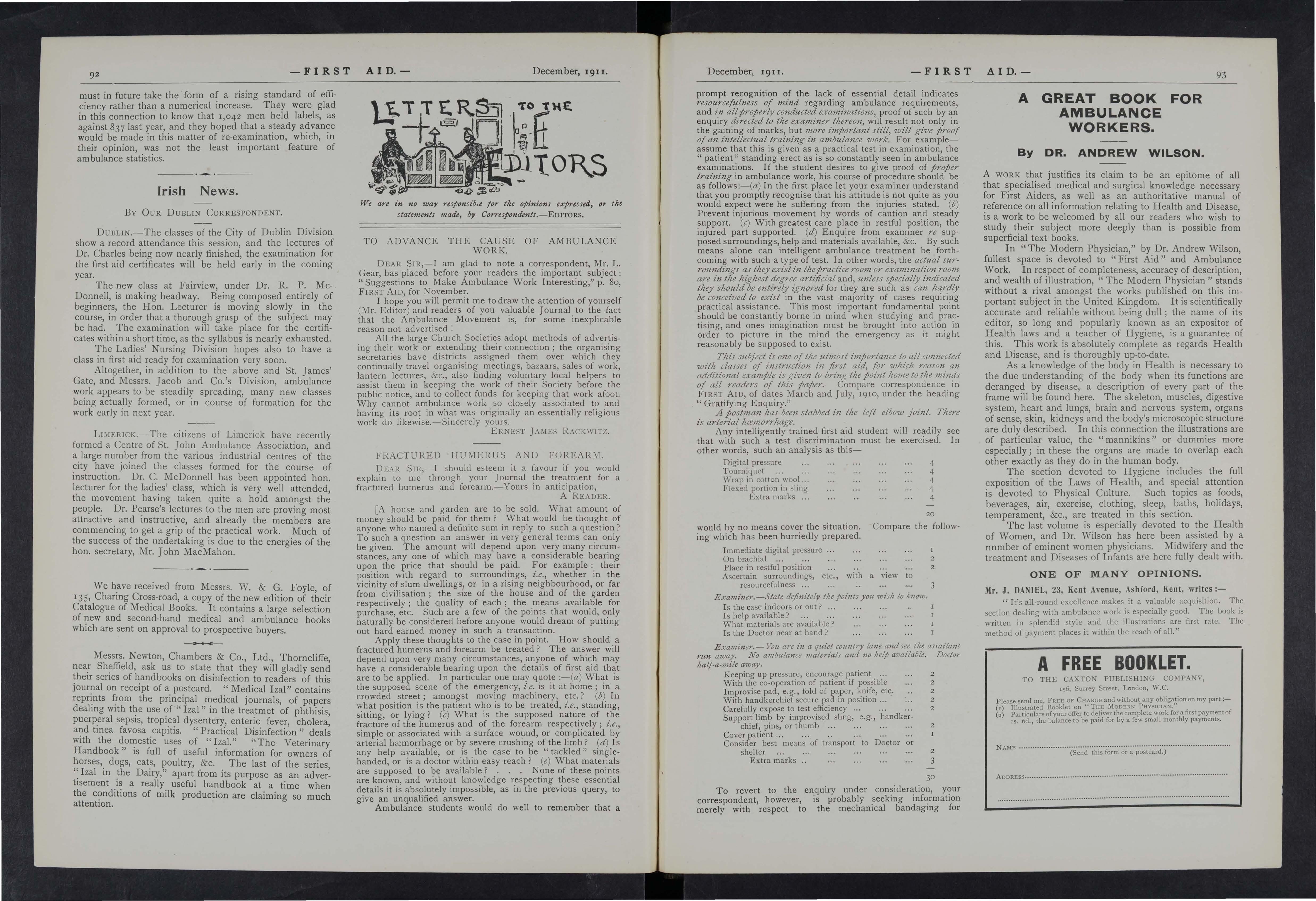 Mr. J. DANIEL, 23, Kent Avenue, Ashford, Kent, writes:" It' s all·round excellence makes it a valuable acquisition. The section dealing with ambulance work is especially good Th e book is written in splendid style and the illustr:ttions are first rate. The method of payment places it within the reach of all."