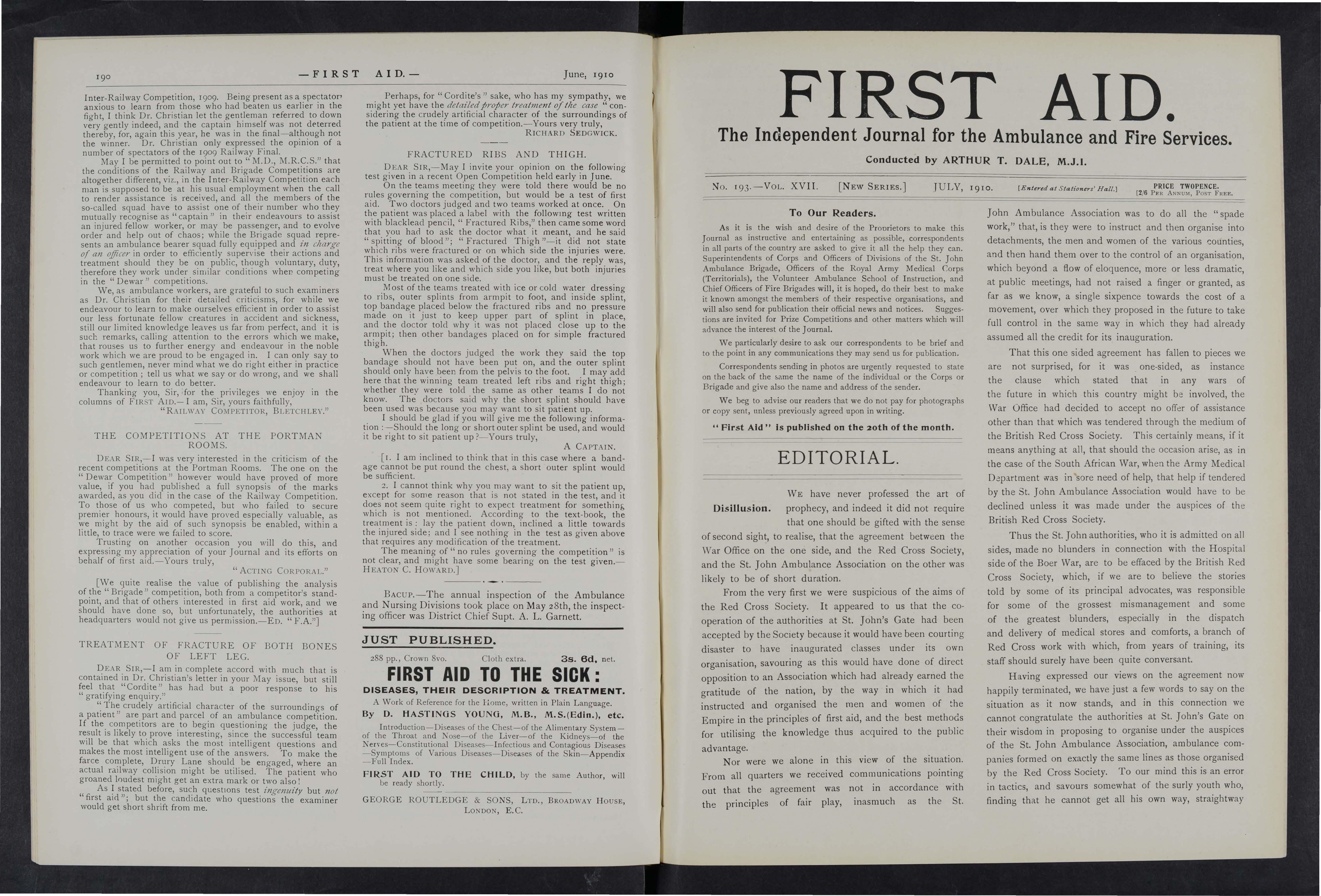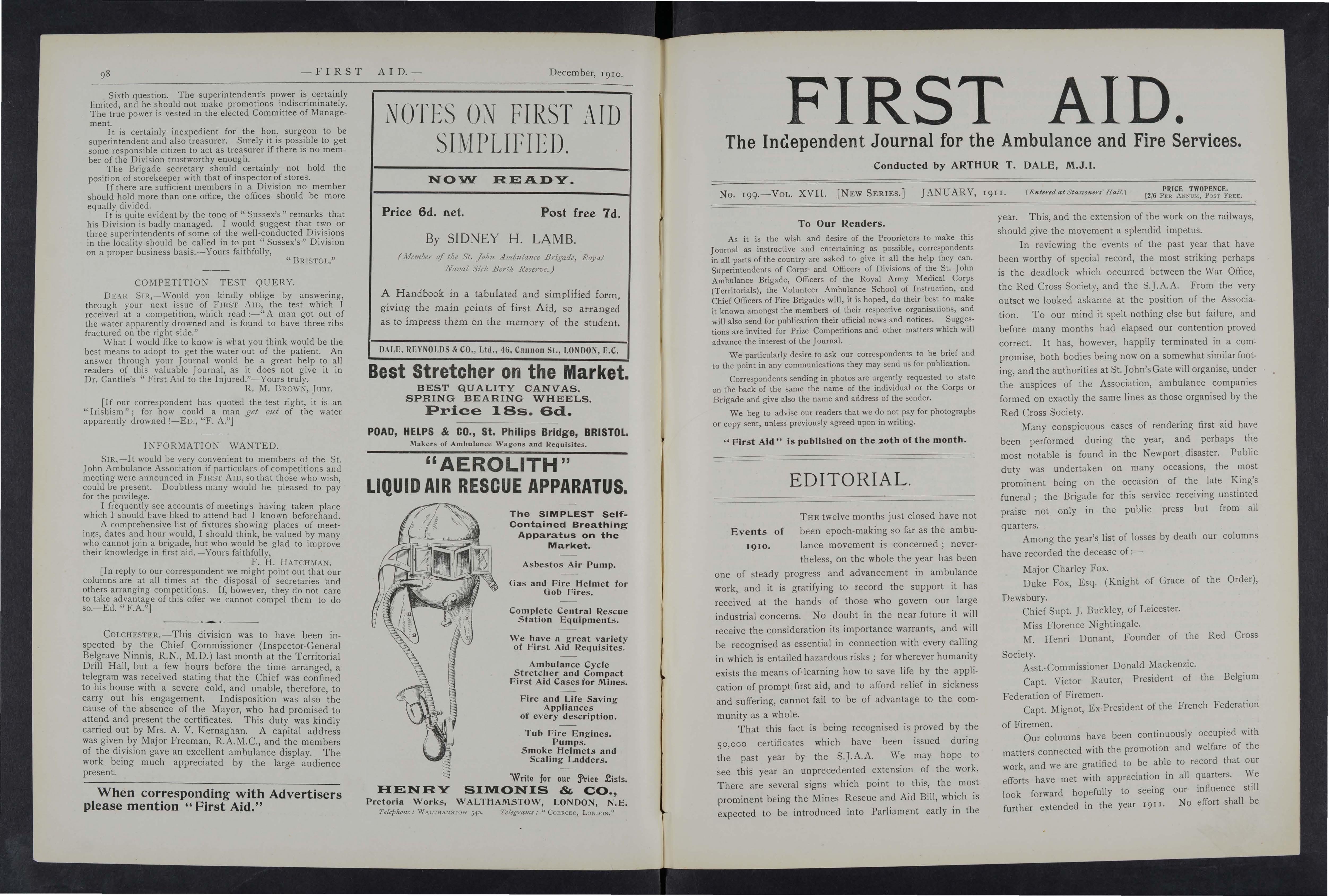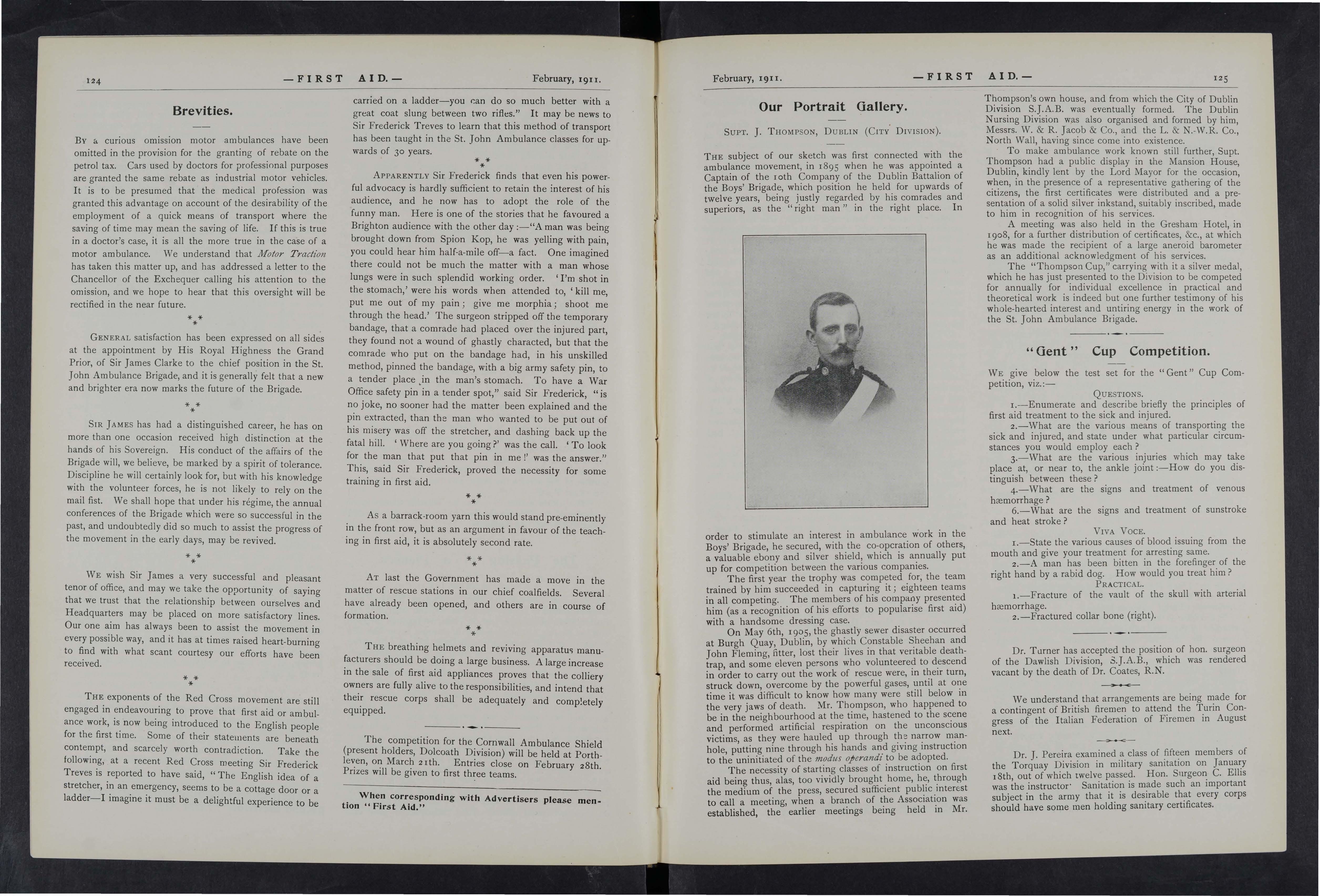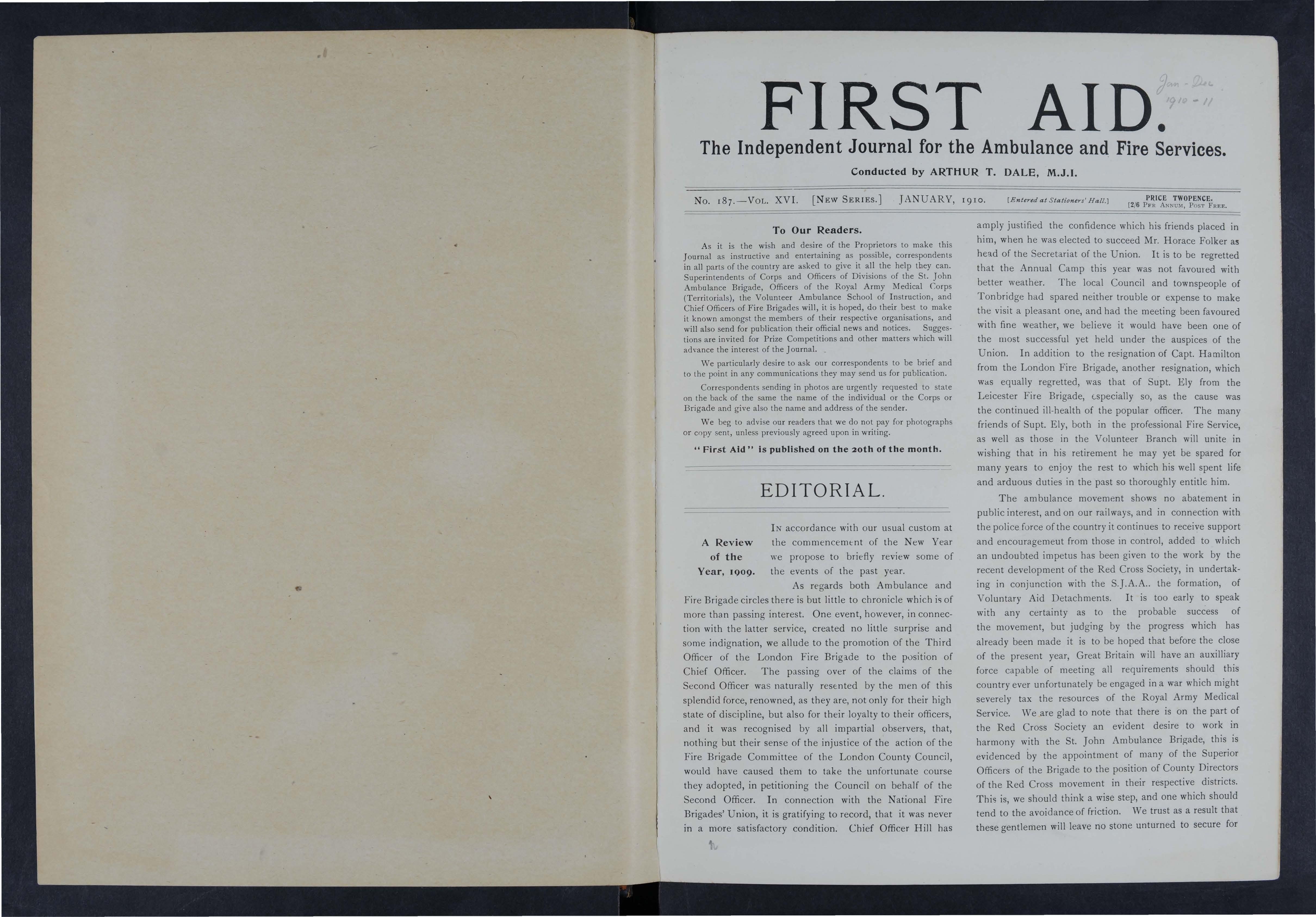 As it is the wish and desire of the Proprietors to make this Joumal as instructive and entertaining as possible, correspondents in all parts of the country are asked to give it all the help they can Superintendents of Corps and Officers of Divisions of the St. John Ambulance Brigade, Officers of the Royal Army Medical Corps (Territorials), the Volunteer Ambulance School of Instruction, and Chief Officers of Fire Brigades will, it is hoped, do their best to make it known amongst the members of their respective organisations, and will also send for publication their official news and notices. Suggestions are invited for Prize Competitions and other matters which will advance the interest of the] oumal.