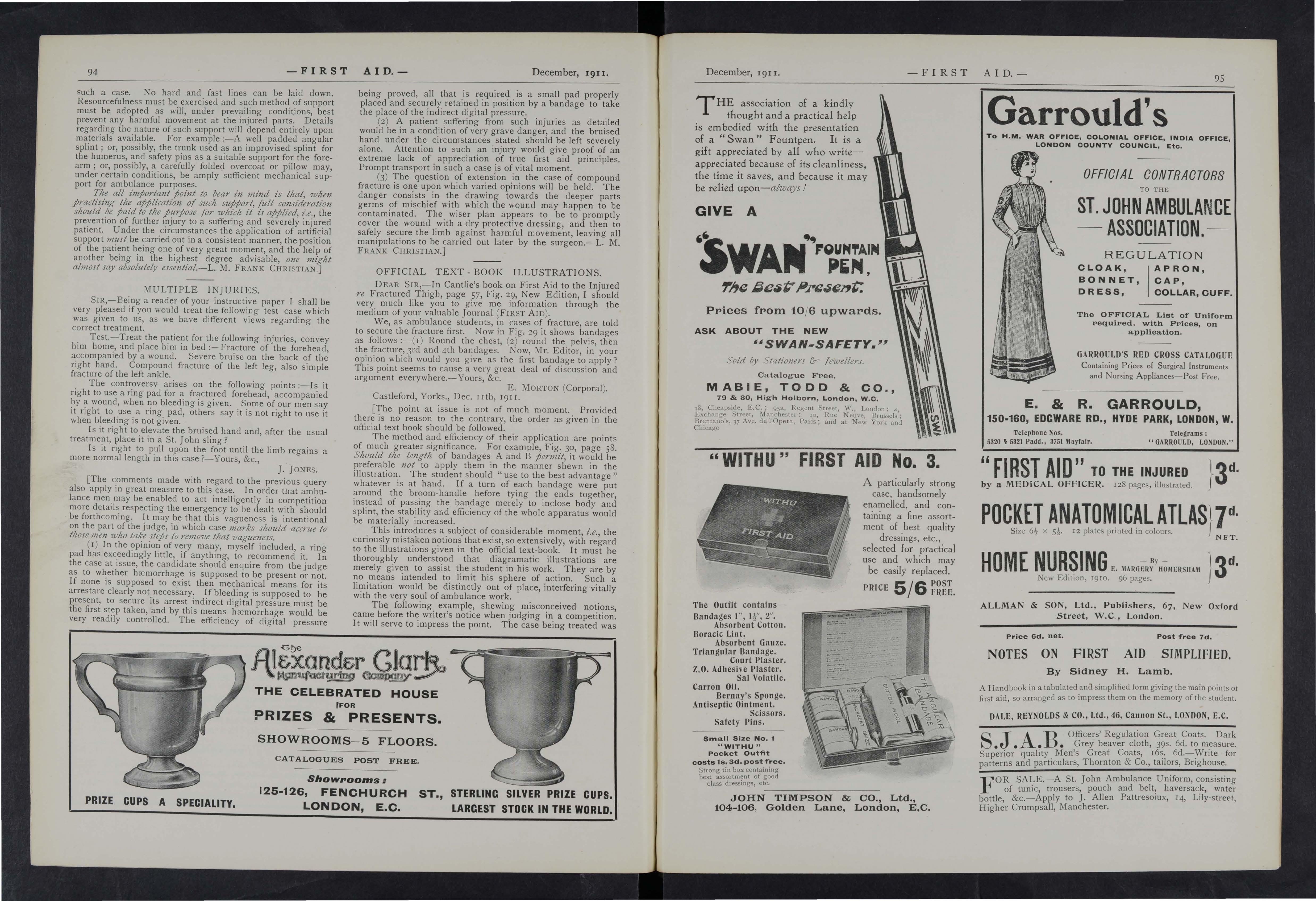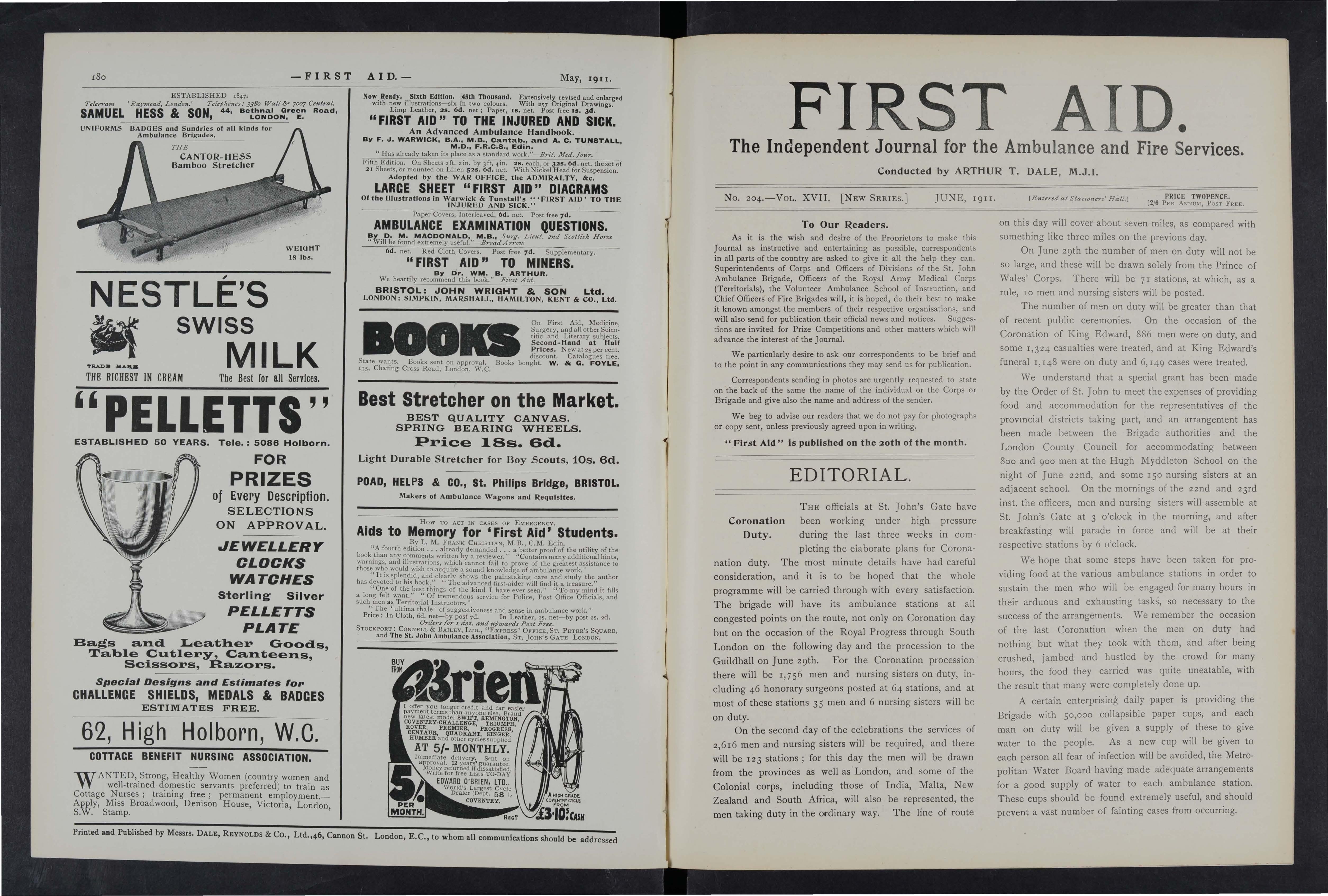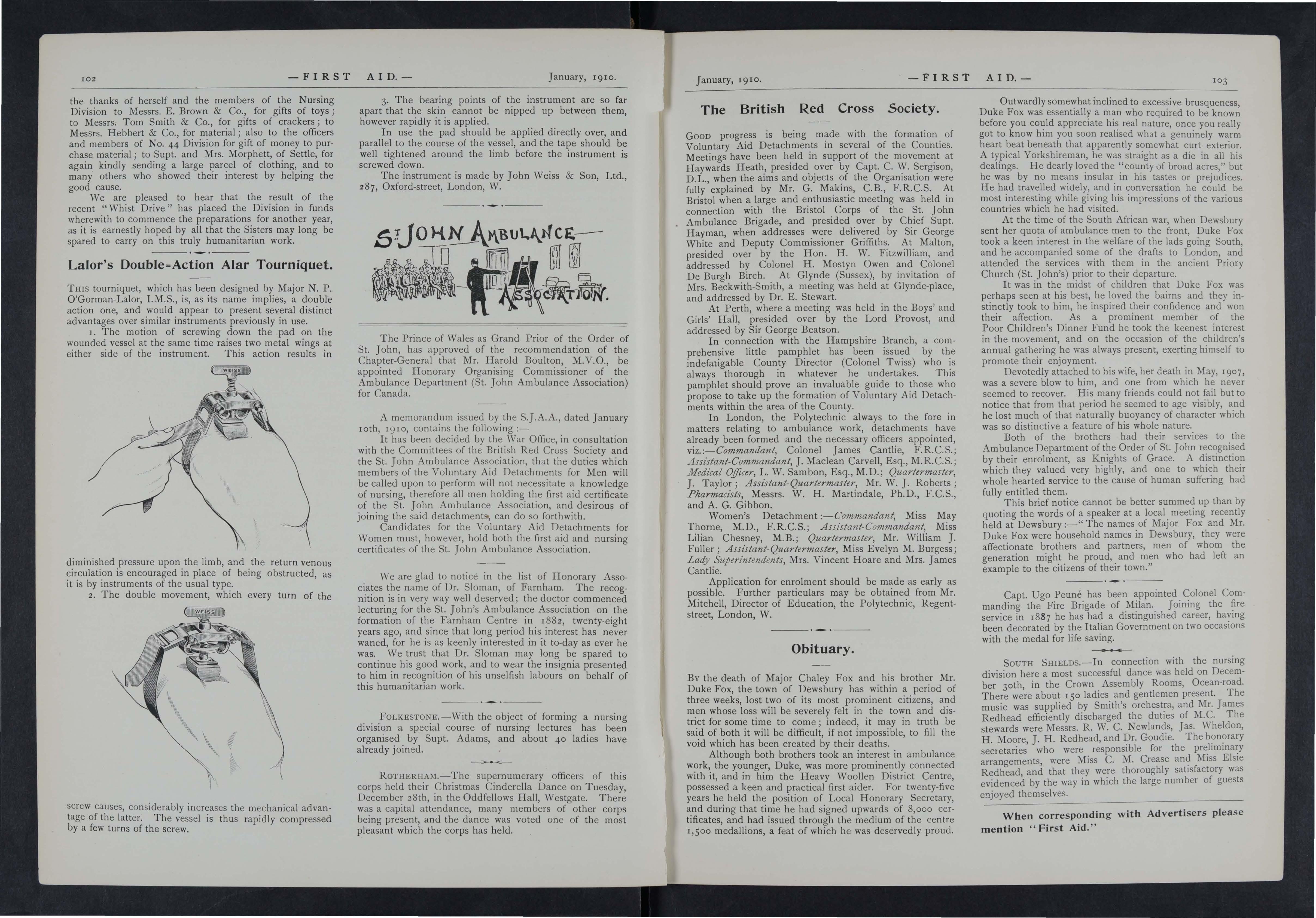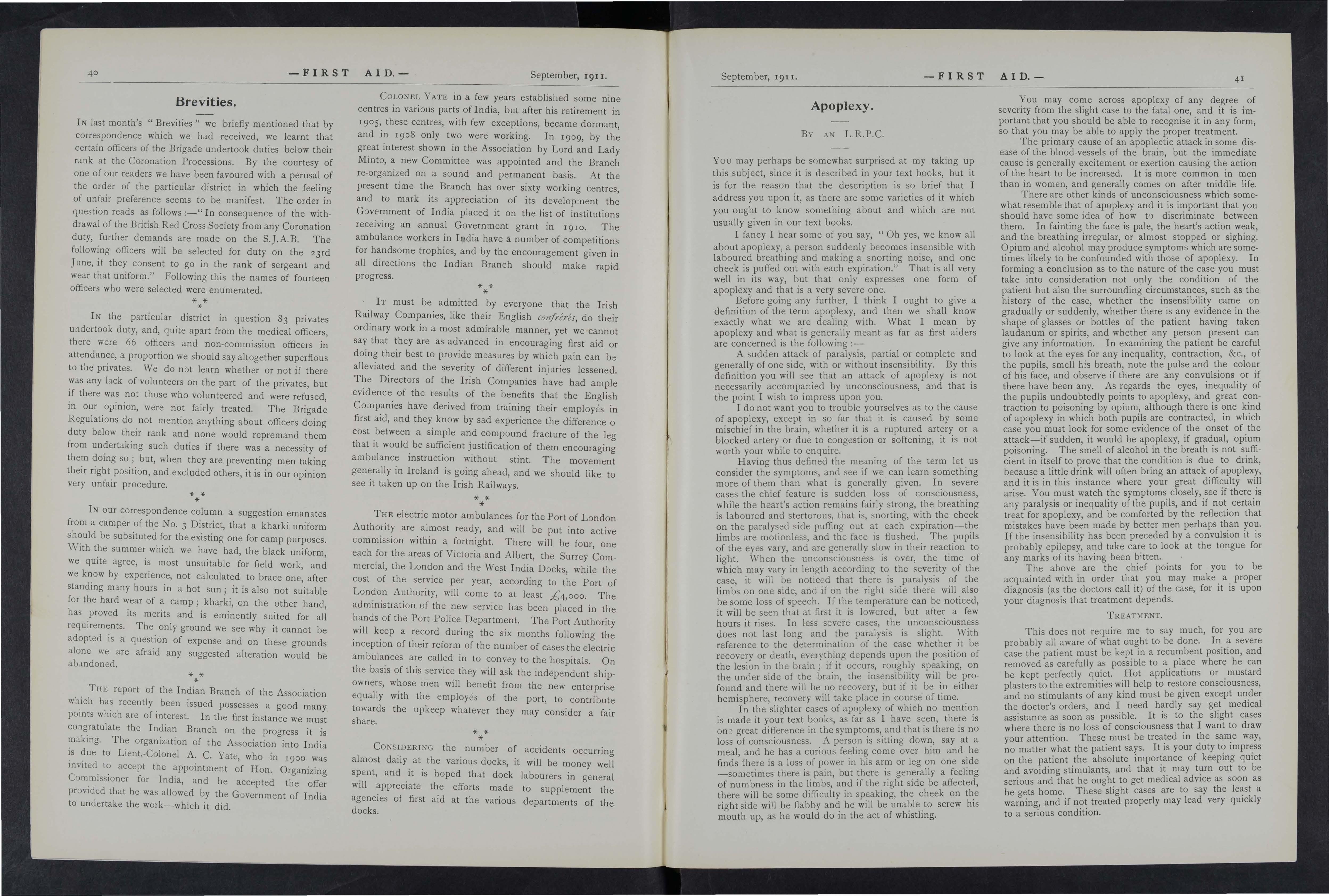 As it is the wish and desire of the Proprietors to make this Joumal as instructive and entertaining as possible, correspondents in all parts of the country are asked to give it all the help they can Superintendents of Corps and Officers of Divisions of the St. John Ambulance Brigade, Officers of the Royal Army Medical Corps (Territorials), the Volunteer Ambulance School of Instruction, and Chief Officers of Fire Brigades will, it is hoped, do their best to make it known amongst the members of their respective organisations, and will also send for publication their official news and notices. Suggestions are invited for Prize Competitions and other matters which will advance the interest of the] oumal.