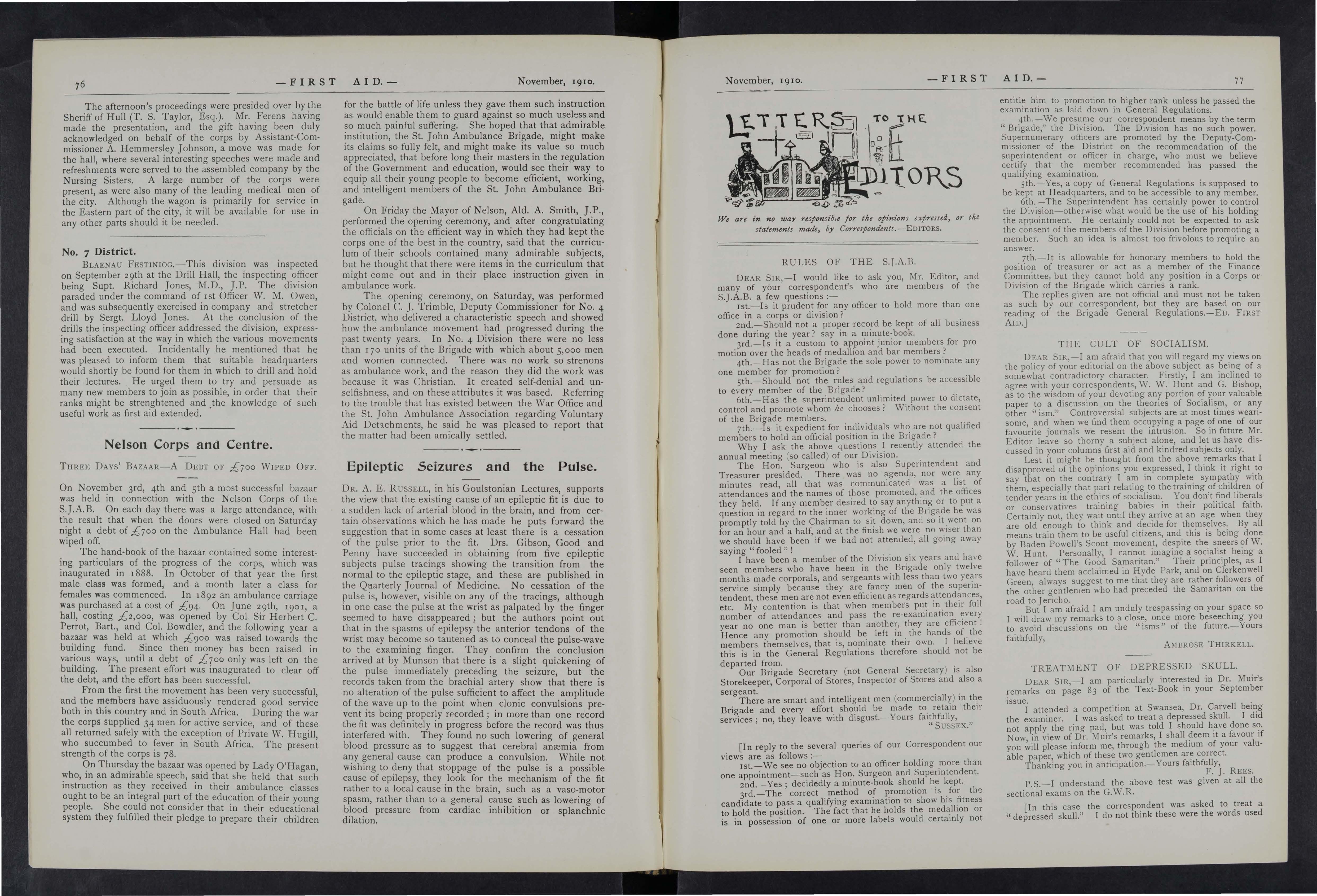 D EAR SIR, -I t is not one moment too soon that you have called attention to this subject in your November issue in fact it .is rather a matter of i.t .has been allowed' to pass Without comment at the vanous DIVISion meetings throughout the country. Petty squabbles and bickerings should un?oubtedly be kept. out of the and indeed no self-respectwould thmk of adoptmg such a course for remedying hiS gnev':l-nces, apparent real; but to forbid any" member of the BrIgade under any Clfcumstances to communicate with the. Press on matters the Brigade "is surely addmg the last straw." If It really means that we are to hide our work-great and humanitarian as it is-from the public