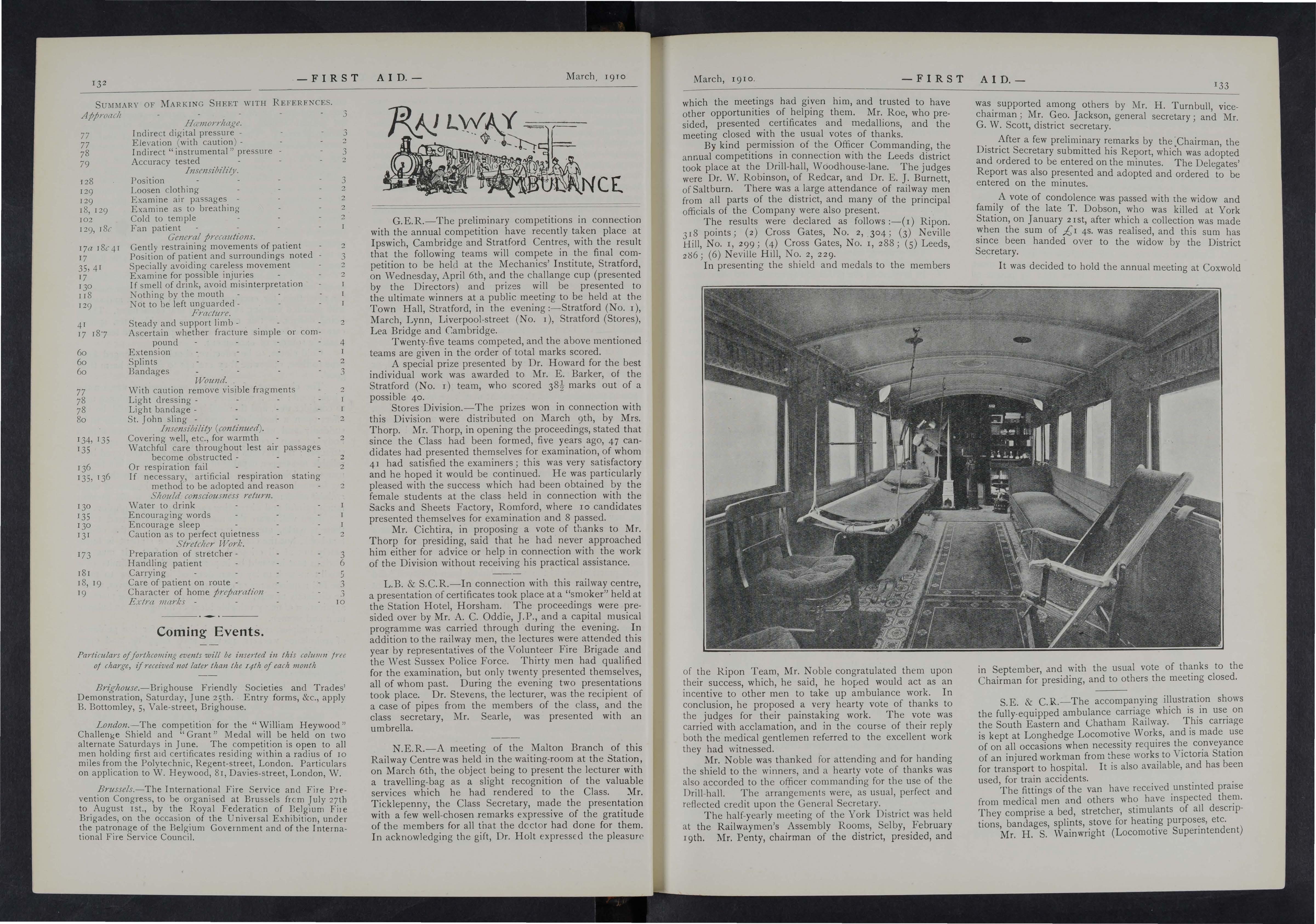 G E.R.-In connection with the Liverpool-street Division of the Great Eastern Railway Ambulance Corps, an Individual Competition for three prizes was held at the Liverpool Street Station on Thursday, pecember. 30th The competition was for members not Included In the teams chosen to represent the division at the annual competition for the Great Eastern Challenge Cup, or who had not previously gained a prize at any other G:eat Eastern Ambulance competition. The judging was kIndly undertaken by Dr. E. King Houchin, who is the surgeon to the division, and also to the Ilford DIVIsIOn of the Metropolitan Corps, S.J.A.B. Supt. W. R. Magnm, of the latter division kindly assisted Dr. King Houchin.