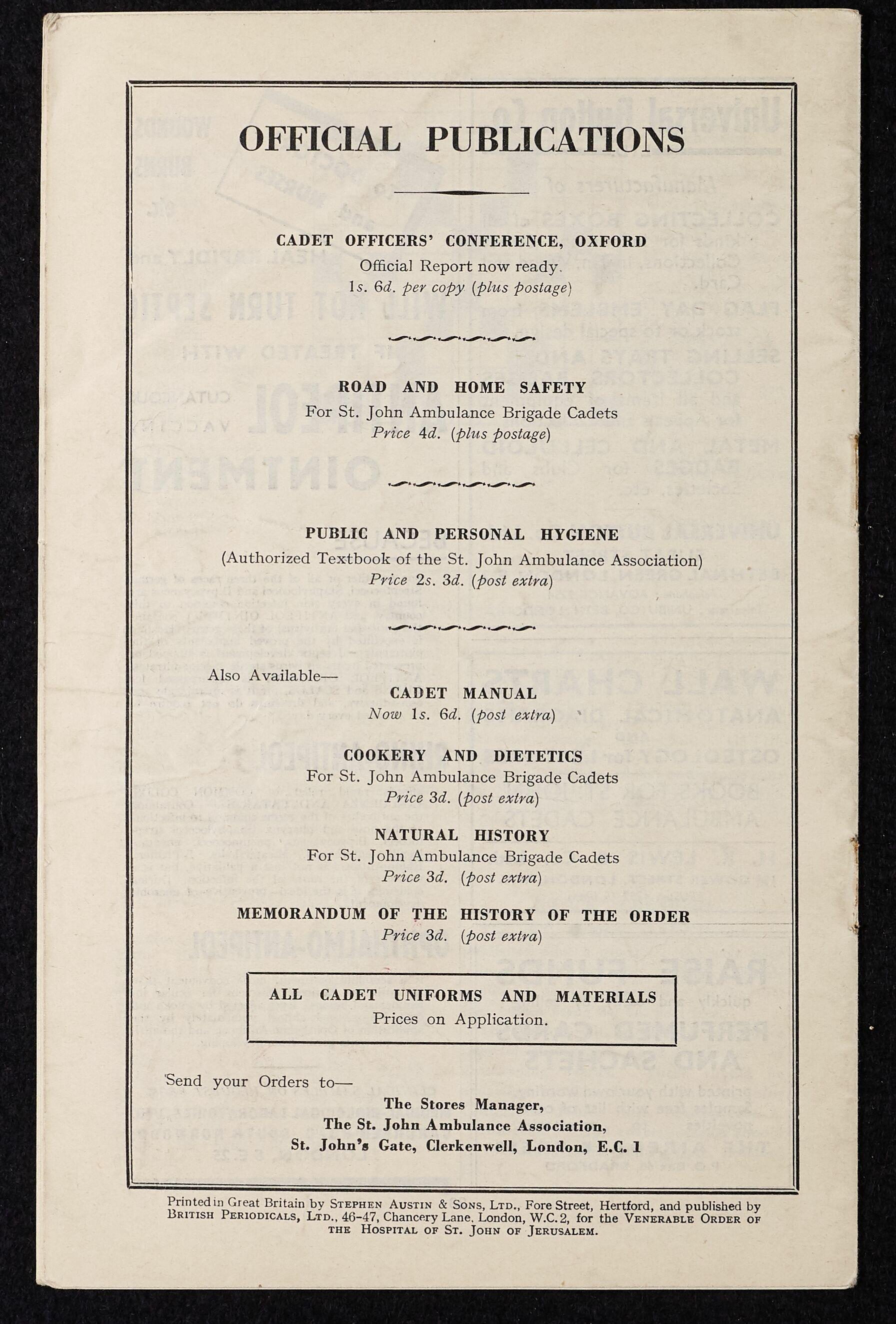 Copies of the report of the Conference held at Oxford, 1949, are now available at 1s. 6d. plus postage. This report is of interest to all Cadet Officers, and every Division should have at least one copy. Orders should be forwarded to the Stores Department, St. John s Gate, London, Cra