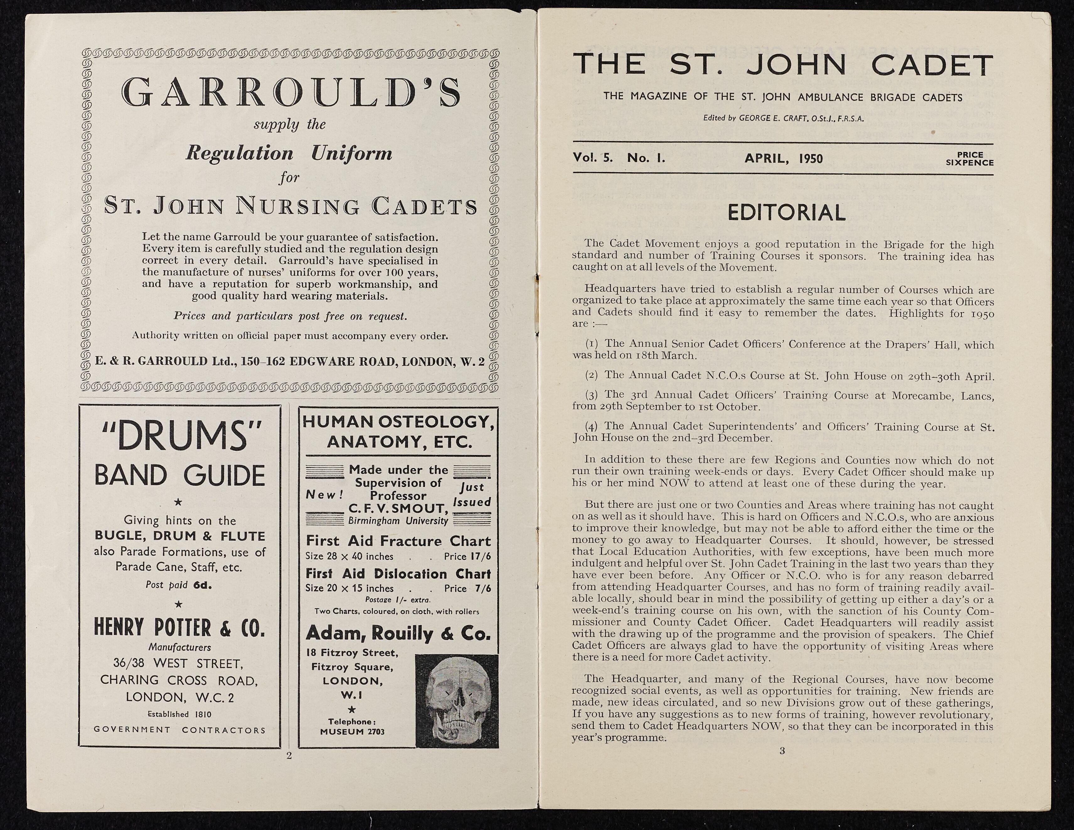 Camp Training Courses. Headquarters are sponsoring a Practical Camp Training Course, which will be held at Elton near Nottingham from the 2nd to 4th June. The Course will be open to Officers and members of all ranks of the Brigade. All those who wish to qualify for the St. John Camp Training Certificate but who have not yet attended a practical camp training course should be encouraged to come. The cost will be approximately one guinea, and application should be made to the Chief Cadet Officers, 8 Grosvenor Crescent, London, S.W. 1, immediately.