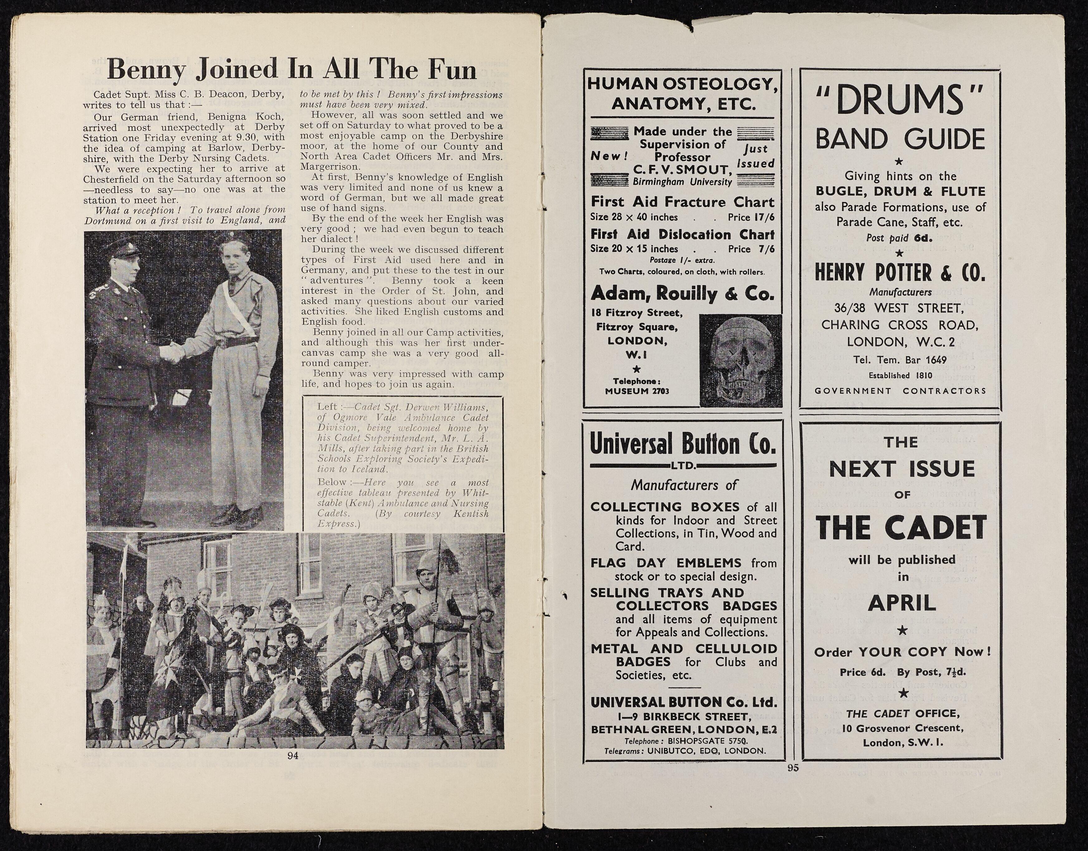 -Cadet Sgt. Derwen Williams, mM umce Cadet home by Below : Here you see a most effective tableau presented by Whitstable (Kent) Ambulance and Nursing Cadets. (By courtesy Kentish Express.)