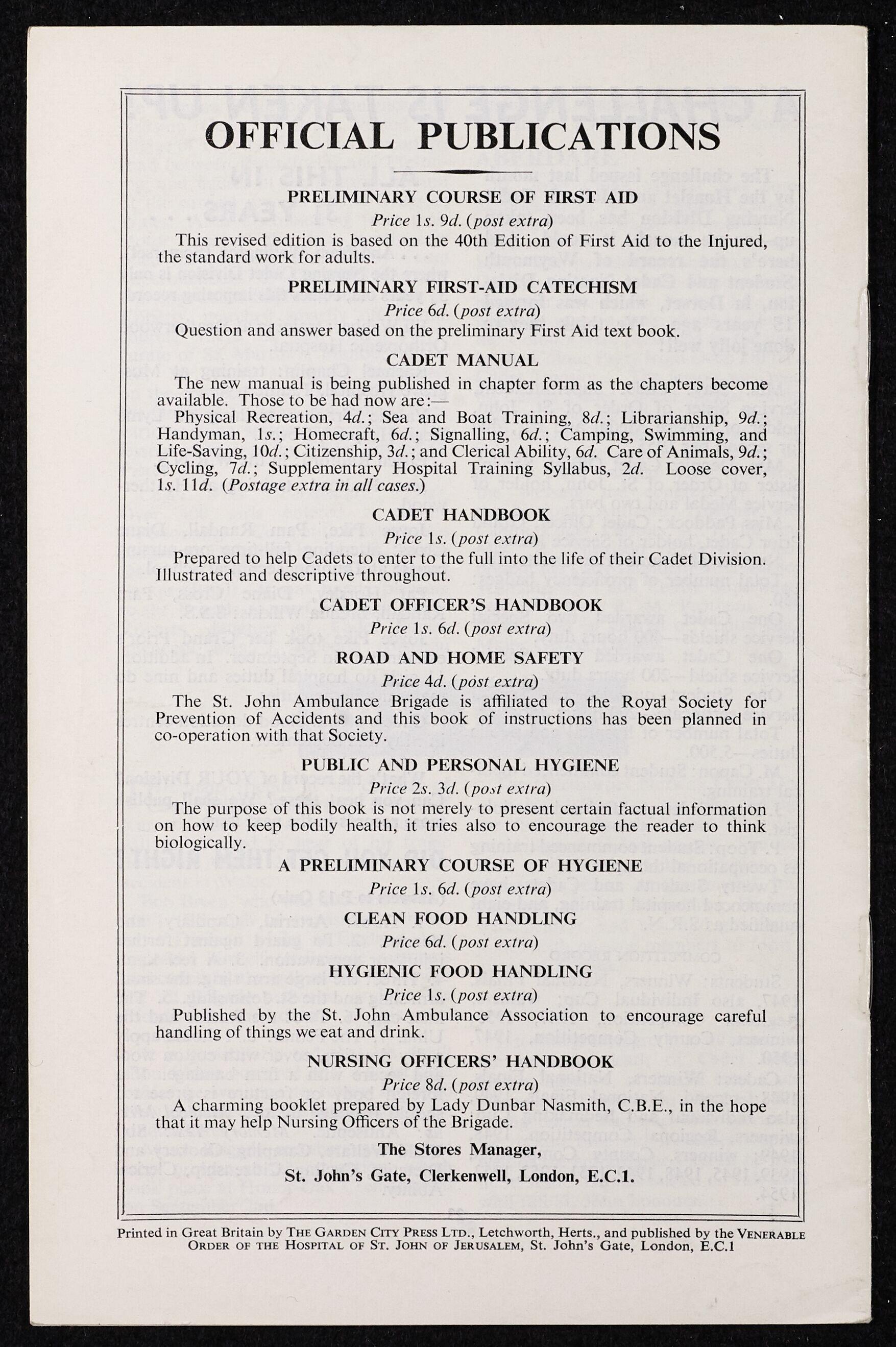 Printed in Great Britain by THE GARDEN City Press Ltp., Letchworth, Herts., and published by the VENERABLE ORDER OF THE HOSPITAL OF ST. JOHN OF JERUSALEM, St. John s Gate, London, E.C.1