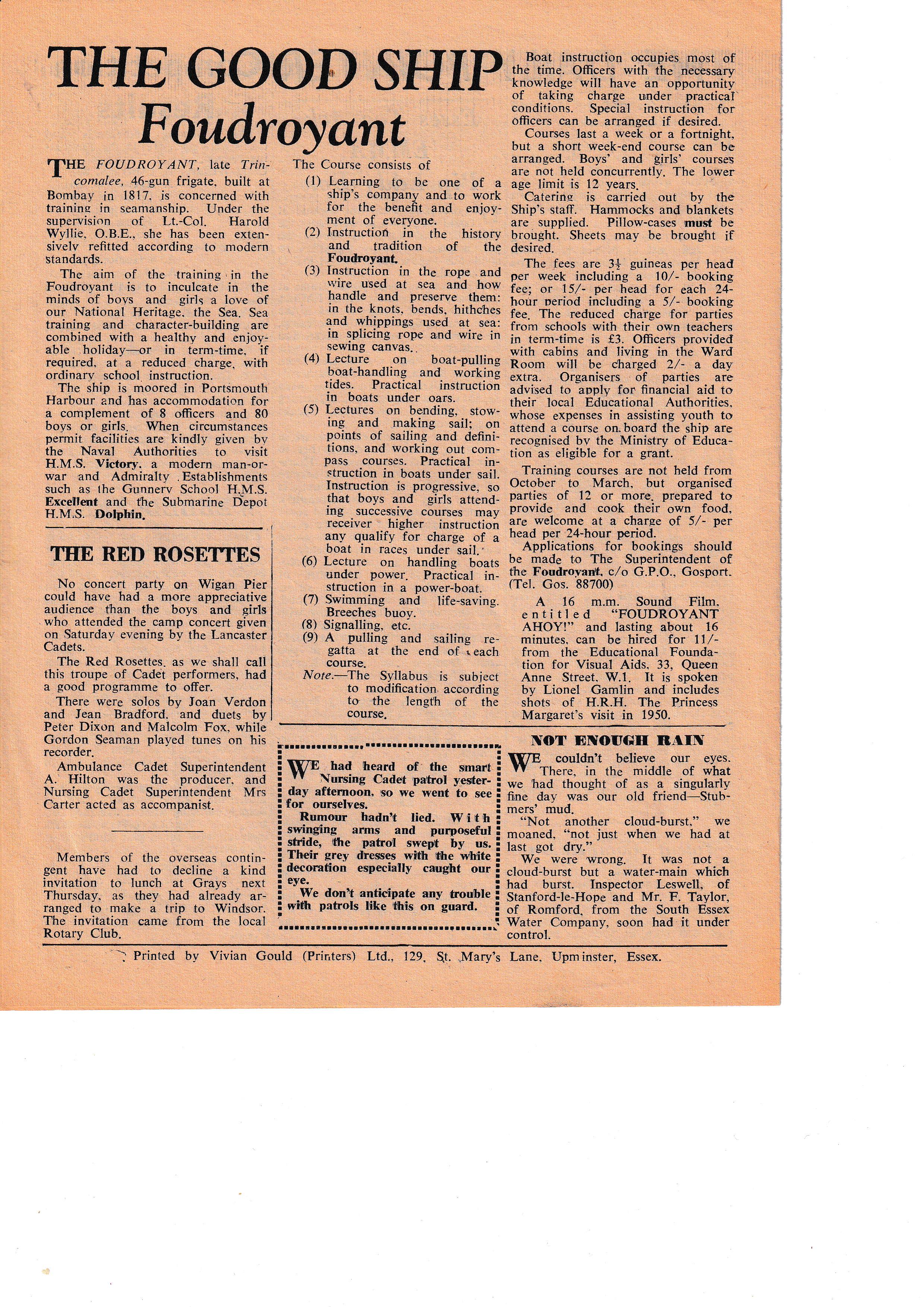 The aim of the training ,in the (3) Foudroyant is to inculcate in the minds of bovs and our National Heritage, the Sea. Sea