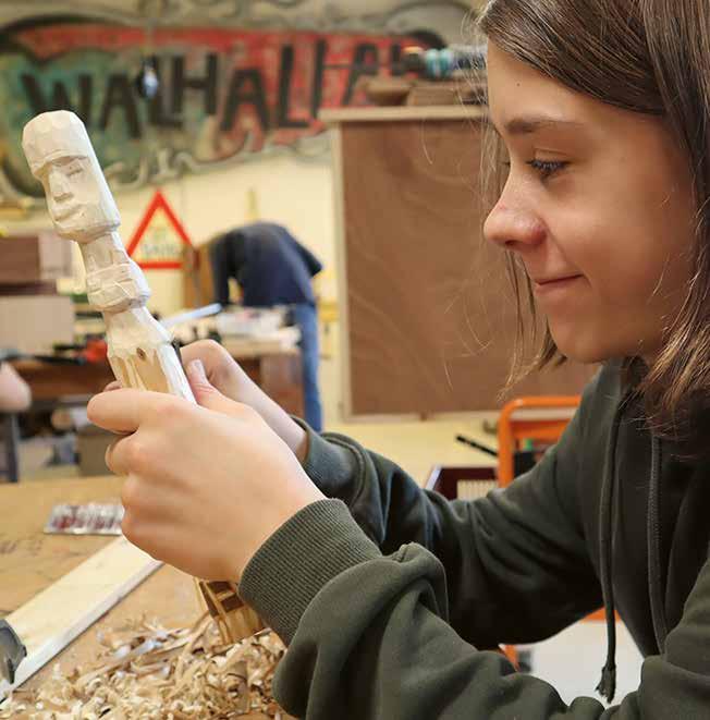 Daarom heb ik mijn dochter Jet meegenomen. Een meisje dat hier vaak komt neemt mijn dochter meteen onder haar hoede. Ik heb een afspraak met Marco Mout. Hij is net binnen en druk in gesprek met een jongen van acht jaar die een vliegtuig heeft gemaakt. Ik word met twee jongens op pad gestuurd, ze geven mij een rondleiding door alle ruimtes van het WALHALLAb. Er is een houtwerkplaats, een chillroom met muziekinstrumenten en lokalen met tot de verbeelding sprekende namen als Schroothoop, KlereKamer en Techroom. Koen vertelt trots dat hij een schaal heeft gedraaid op de houtdraaibank. Ik krijg ook de lasercutter te zien waar ze prachtige kunstwerken van hout en kunststoffen mee maken.