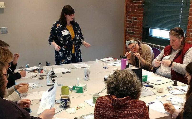 The Museum Textile Services Learning Lab has proved to be an incredible success after its inaugural year. All four of our scheduled classes sold out, so an extra session was added. We kicked off the season with Fiber and Fabric Identification where participants observed fiber and textiles micro- and macroscopically. Participants took home fiber and fabric samples that they observed with linen testers and under microscopes.
