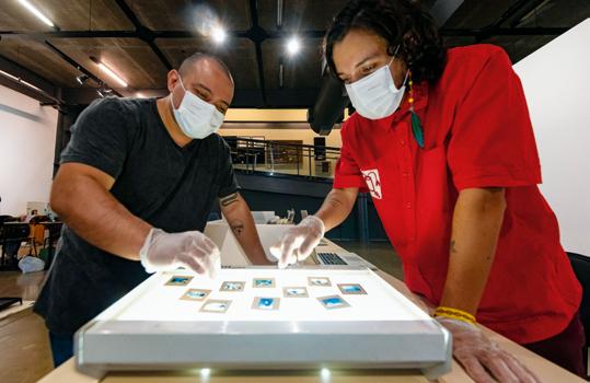 Gustavo Caboco e Denilson Baniwa. Etapa museu-ateliê da Retomada da Imagem, Museu Paranaense, novembro de 2021.