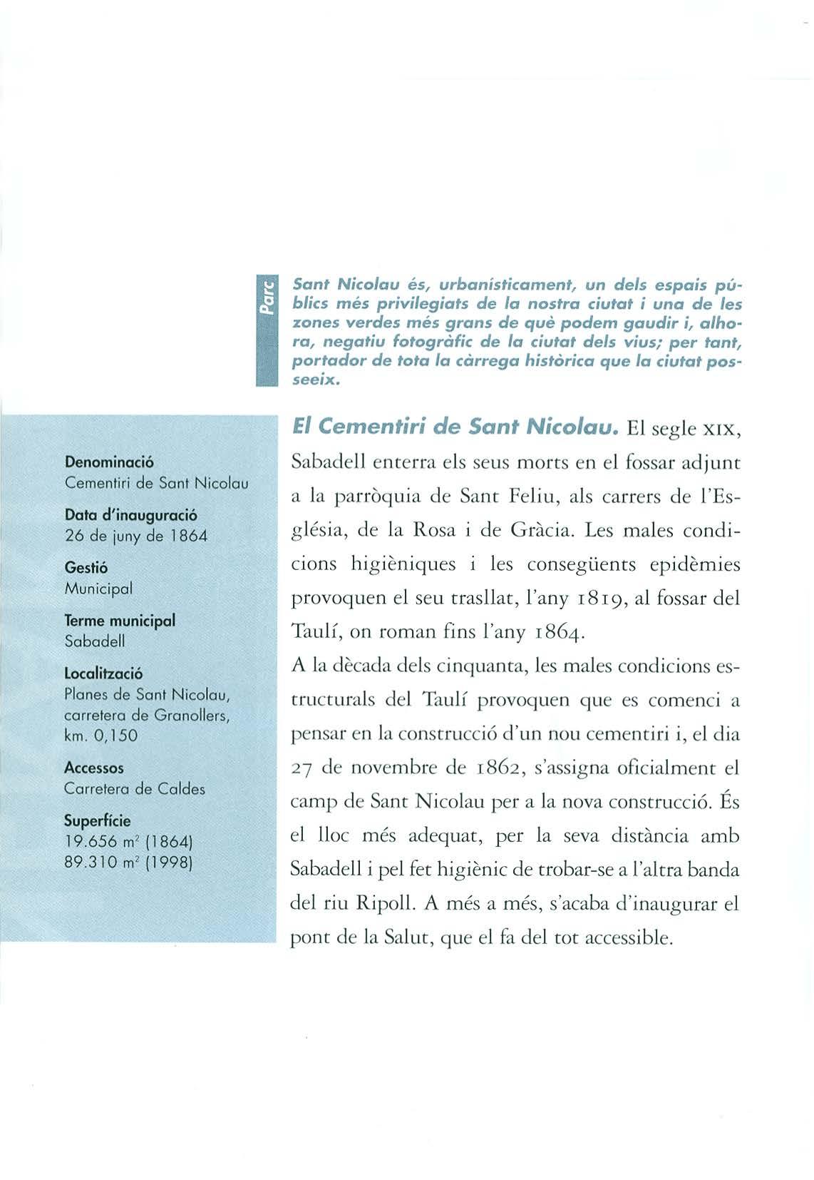 Mirades sobre el cementiri de Sant Nicolau (Sabadell)