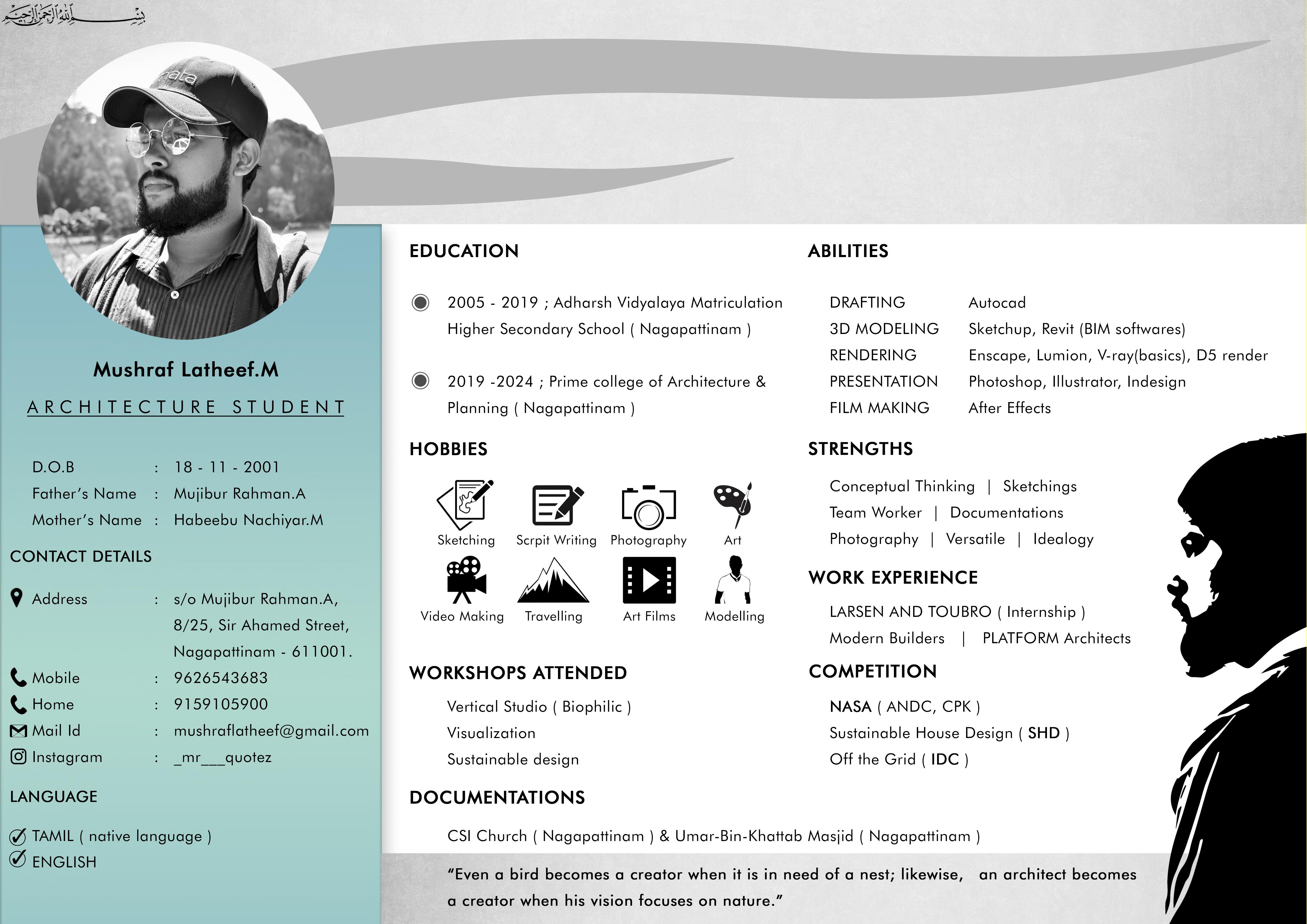 As a freshly graduated architect with a strong academic foundation in architectural concepts, I have developed skills using industry-standard tools like AutoCAD, Sketchup, Lumion, and BIM software like Revit, Navisworks, and Insight and Presentation software like Photoshop and InDesign. My passion for sustainability and industry trends make me a valuable asset to your team. I am enthusiastic about using my knowledge, creativity, and attention to detail in a professional setting, confident in my ability to make substantial contributions.
