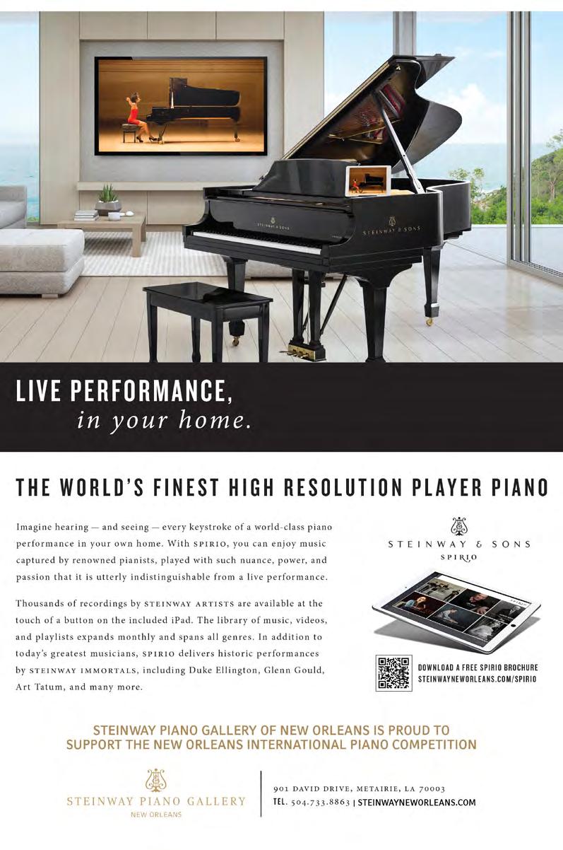 Acknowledgments: Hristo Birbochukov, Michael Boucree, Courtney Bryan, Jason Burge, Louise Bush, Trey Cassels, Kevin Chance, Vivian Chiu, Alan Chow, Mary Jane Crist, Bruce Crutcher, Kate Duncan, Robert Edgecombe, Kelly Gaubert, Dustin Gledhill, David Greenhouse, Elder Gwin, Sheryl Kennedy Haydel, Sara Henegan, Rosalind Hinton, Joan Jensen, Steve Kinchen, Leo Landry, Allan Ledbetter, Loyola University, Faina Lushtak, William Marshall, Brianna McMorris, Stefan Moll, New Orleans Jazz and Heritage Foundation, Julianne Nice, Diego North-Rios, Glenn Noya, Igor Resnianski, Kate Scheuermann, Dean Shapiro, Annette Sisco, Steinway & Sons, Steinway Piano Gallery of New Orleans, Anne Sumich, Charles Taylor, University of New Orleans, Terry Voorhies, Thomas Walsh