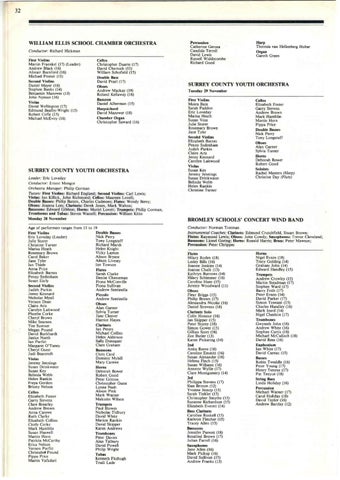 SURREY COUNTY YOUTH ORCHESTRA Tuesday 29 November First Violins Moira Bain Sarah Paddon Eric Loveday Marisa Heath Susan Voss Julie Storer Rosemary Brown Jane Tyler SecoRd Violins Elizabeth Barnes Penny Sydenham Judith Parkin Claire Aris Jenny Kennard Carolyn Laitwood Violas Susan Key Jeremy Jennings Susan Drinkwater Belinda Webb Helen Rankin Christine Turner