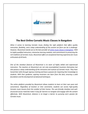 Music is a universal language that has the power to connect people, evoke emotions, and uplift spirits. If you're passionate about learning music and want to unlock your musical potential, Musicintuit is here to help. As a leading provider of online music classes in Bangalore, Musicintuit offers a comprehensive range of courses designed to cater to beginners, intermediate learners, and advanced musicians. With a team of talented instructors and a flexible online learning platform, Musicintuit provides a transformative musical journey for individuals of all ages. Let's delve into the world of Musicintuit and explore the advantages of their Online music classes in Bangalore