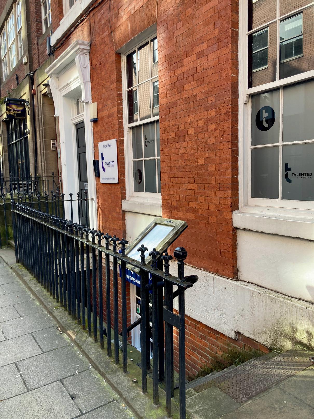 Follow Lower Merrion Street uphill to the junction with New Briggate, and look to your left.
